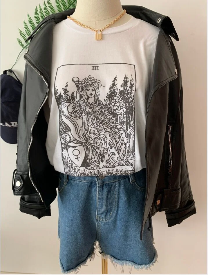 1 шт., ретро футболка с картой императрицы Таро, майора Аркана, гадания, оккультная футболка, повседневная для женщин, хлопковая футболка