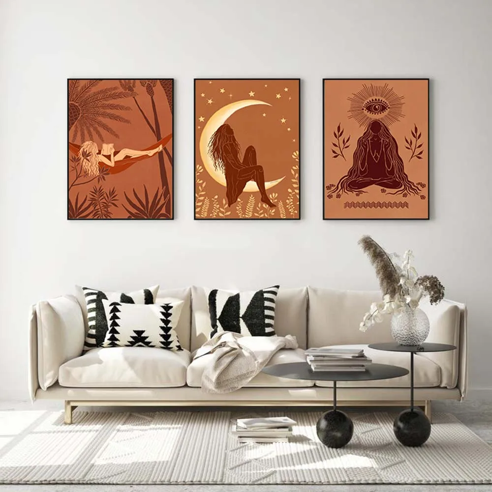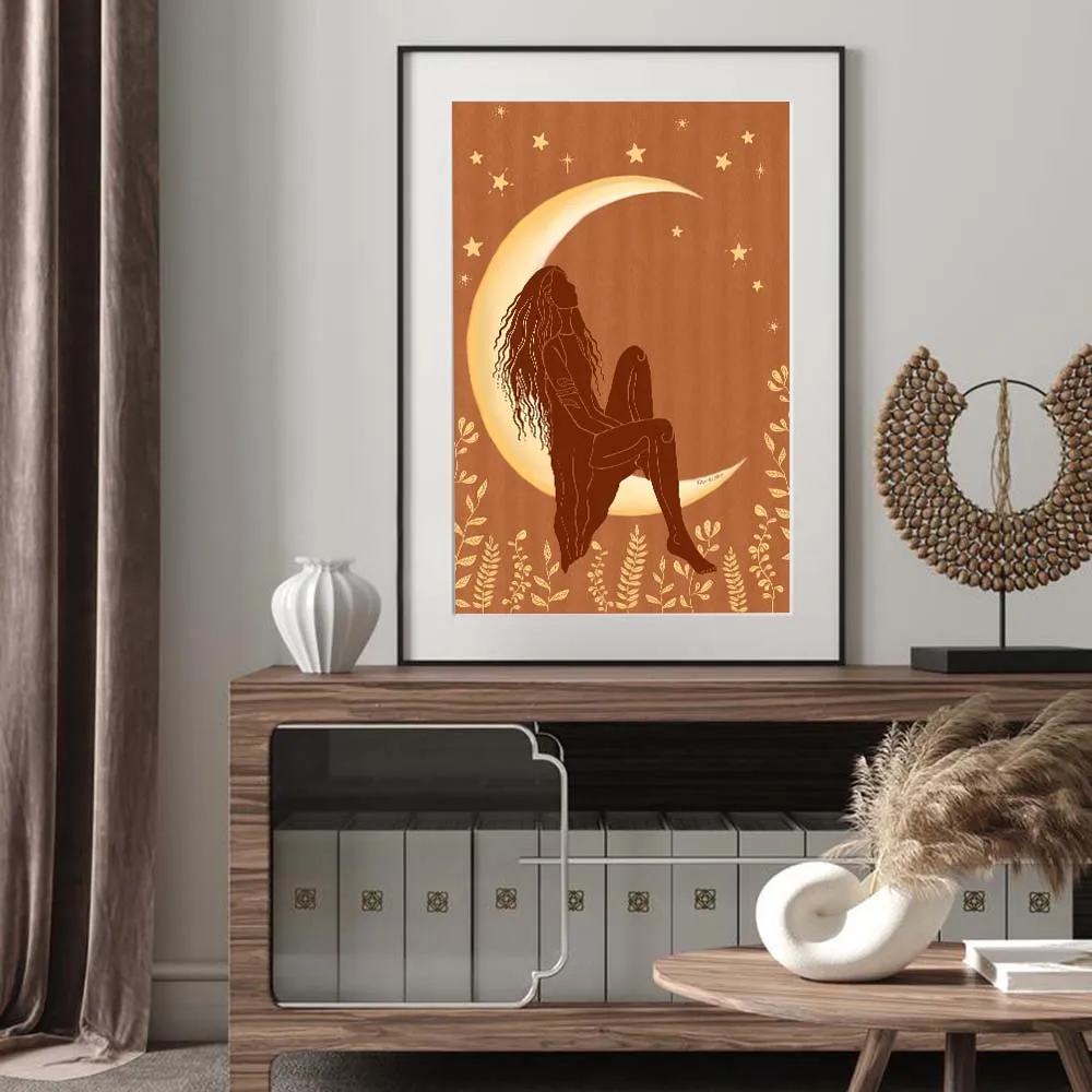 Религиозная иллюстрация, абстрактная девушка в Луне, плакаты и принты, украшение на стену, винтажные плакаты, настенное искусство, домашняя живопись, Декор