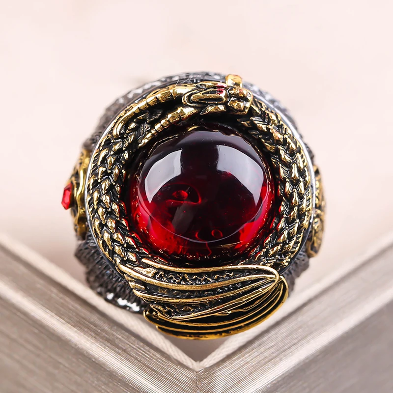 Кольцо мужское из нержавеющей стали с красным кристаллом, винтажное Ювелирное Украшение в классическом золотой дракон, готика, панк, Хороший Подарок на годовщину свадьбы