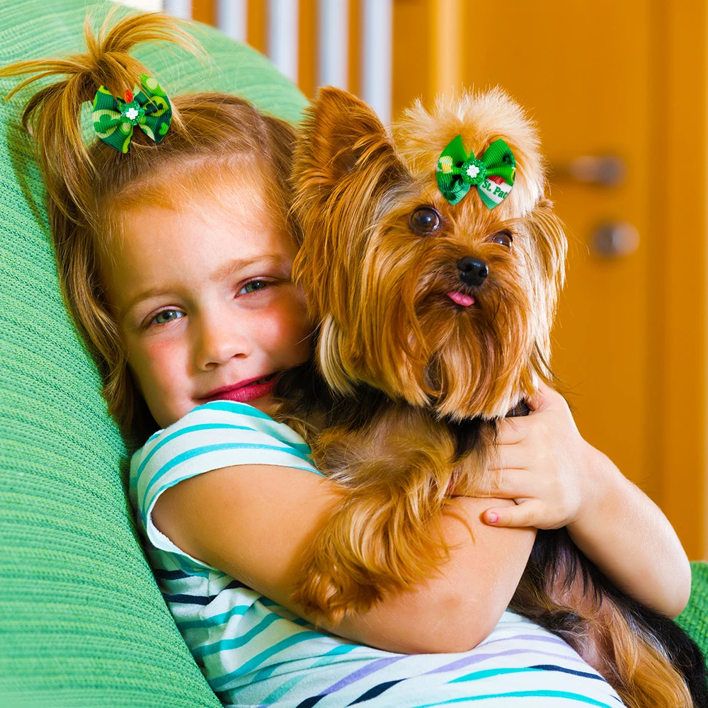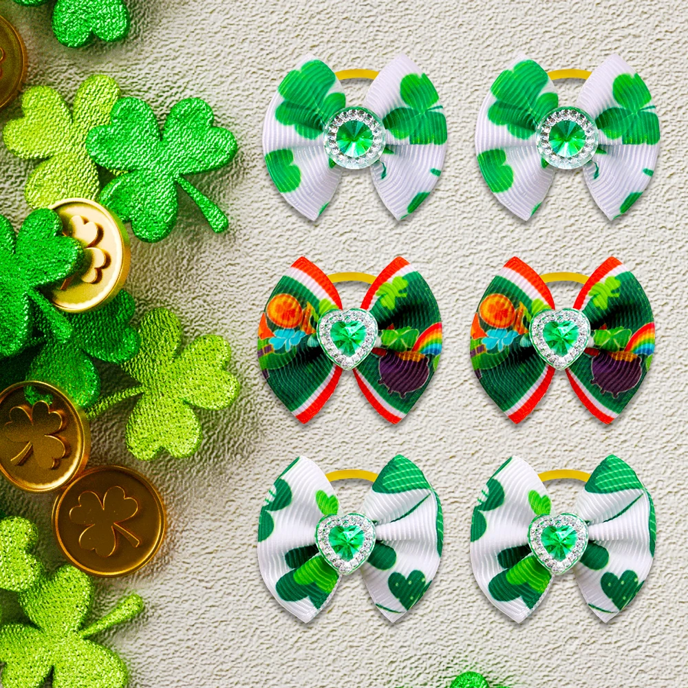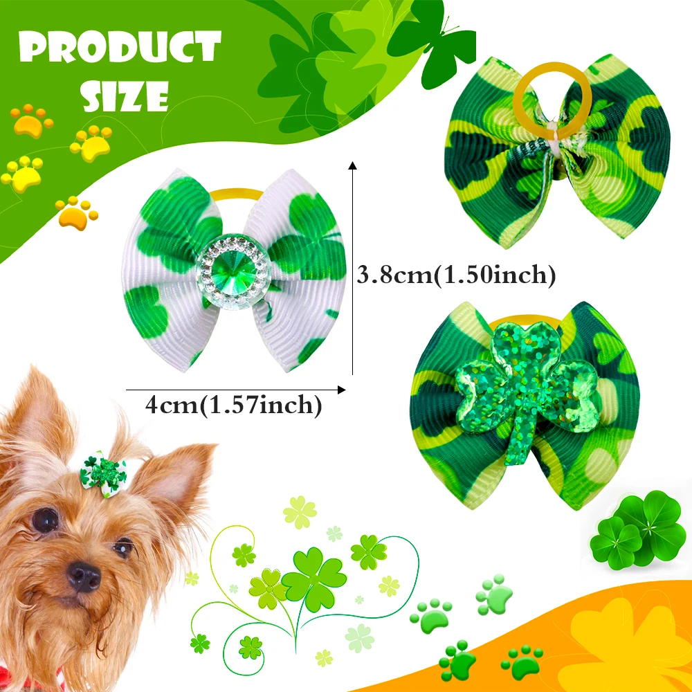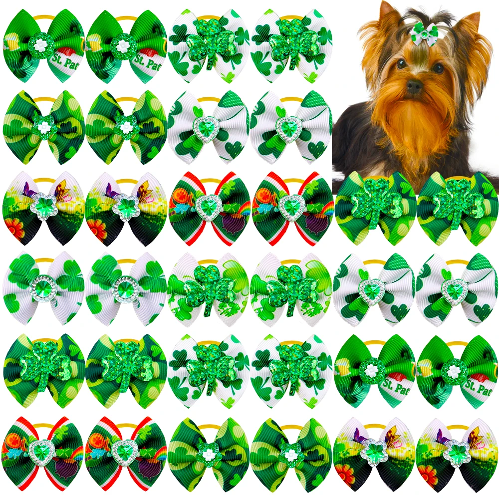 100 шт. банты для собак Святого Патрика аксессуары для собак Samll собака банты волосов зеленый домашних животных, собак волос аксессуары для животных принадлежности маленькие банты для собак