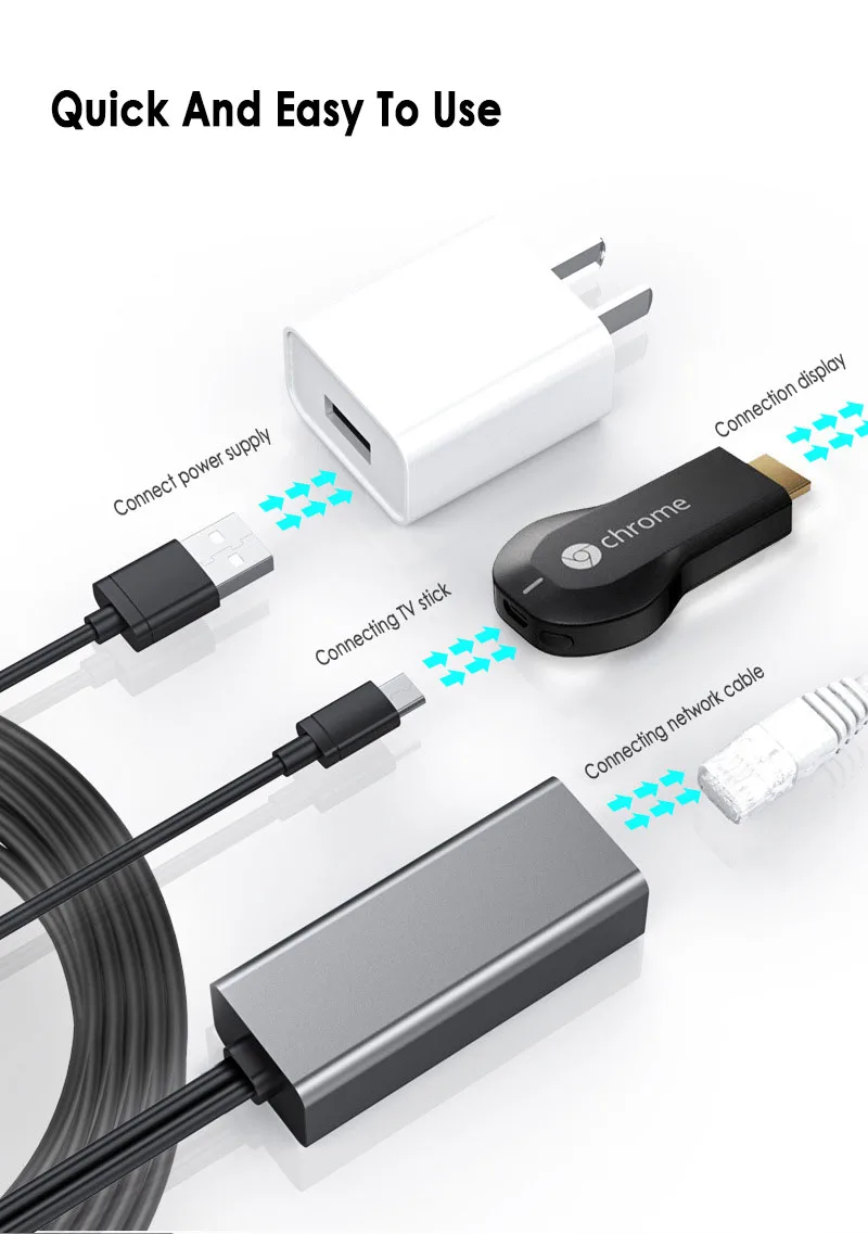 Шаг 2: Подключите разъем Micro USB к вашей палке Chromecast / TV. Вам нужно убедиться, что разъем Micro USB надежно подключен к вашей палке Chromecast / TV.