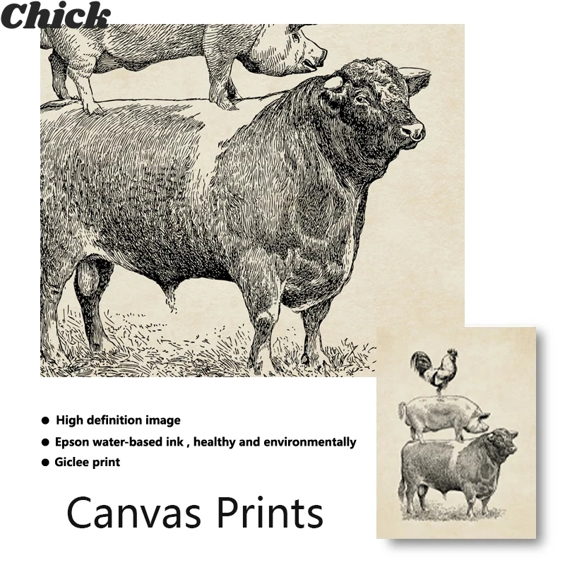 Детское животное, синий пузырь, искусство на холсте, печать на стен...