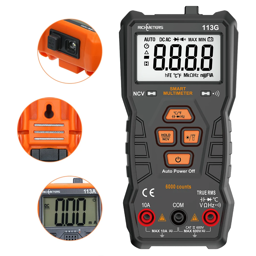 Цифровой мультиметр RM113G, тестер 6000 отсчетов, автоматический измеритель напряжения переменногопостоянного тока, NCV RM113E