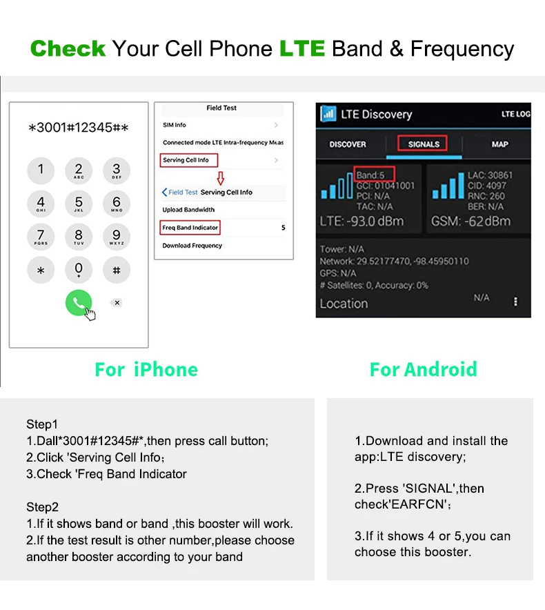 1. Сначала Проверьте частоту, частота усилителя-700/1800/2100/2600 МГц/,Band28/Band3/Band1/Band72. Убедитесь, что диапазон частот вашего перевозчика подходит для этого элемента. В противном случае устройство не может работать для вас.