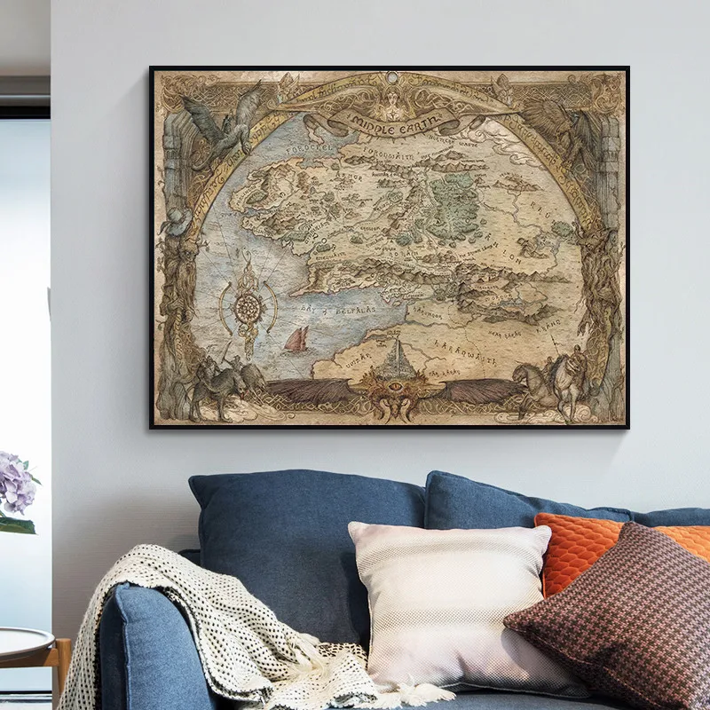 Плакаты и принты с картой ближней земли, классические настенные картины по мотивам фильмов, для гостиной, украшение для стен в помещении большого размера