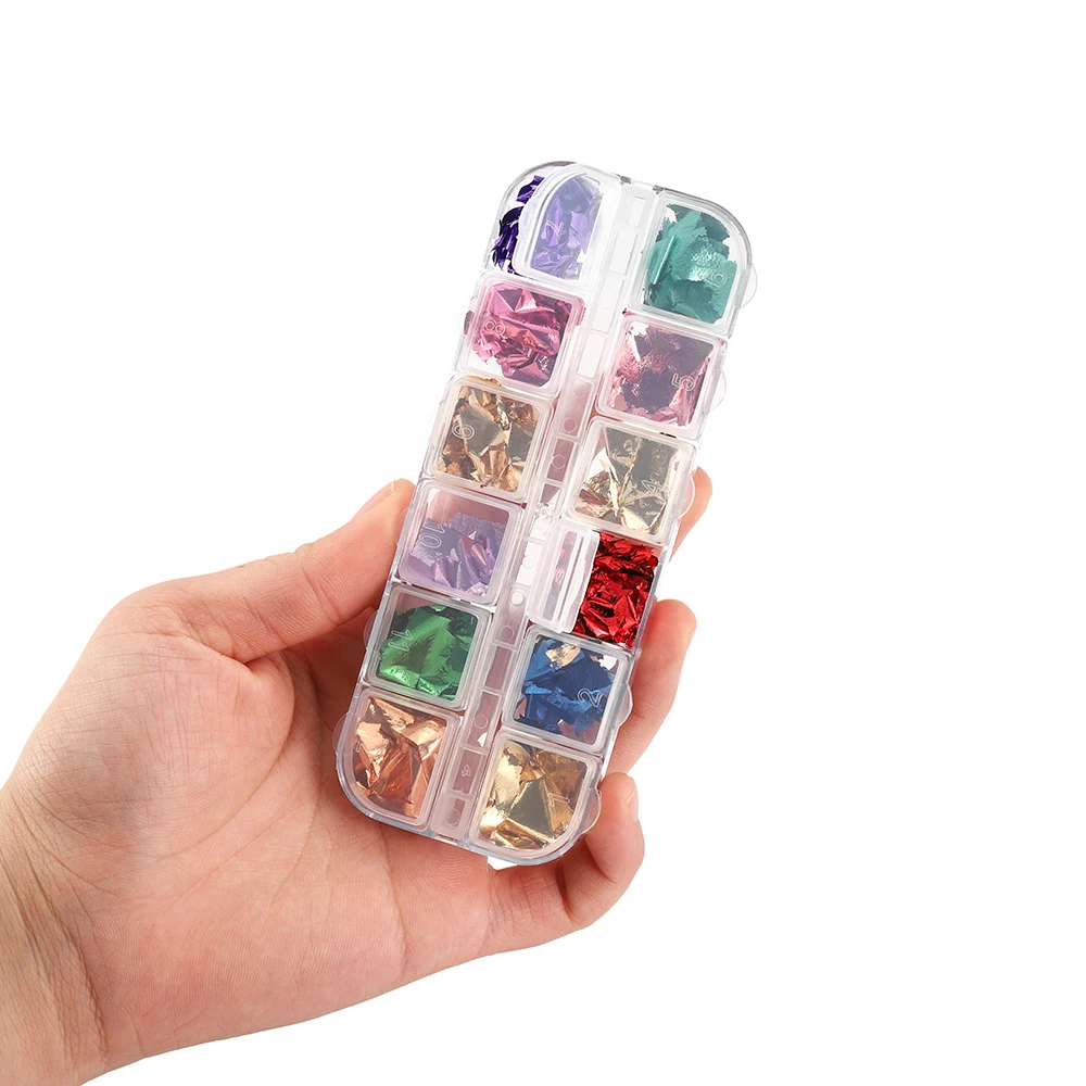 12 видов цветов, золото, серебро, красный, синий, цветная фольга для дизайна ногтей, бумага для украшения ногтей, для рукоделия, эпоксидная смола, художественное украшение, рукоделие