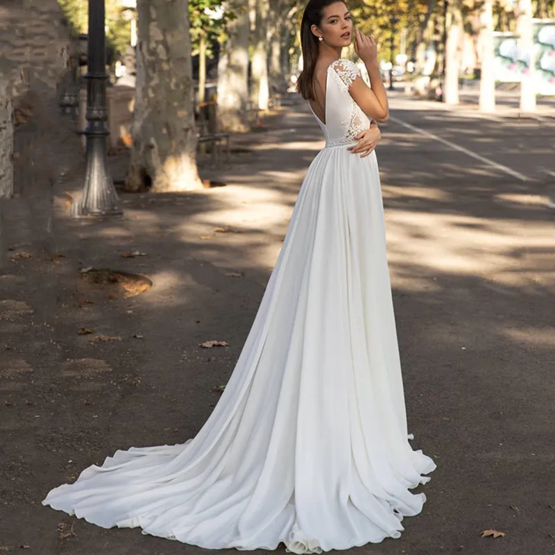 Женское свадебное платье с V-образным вырезом, кружевное шифоновое ...