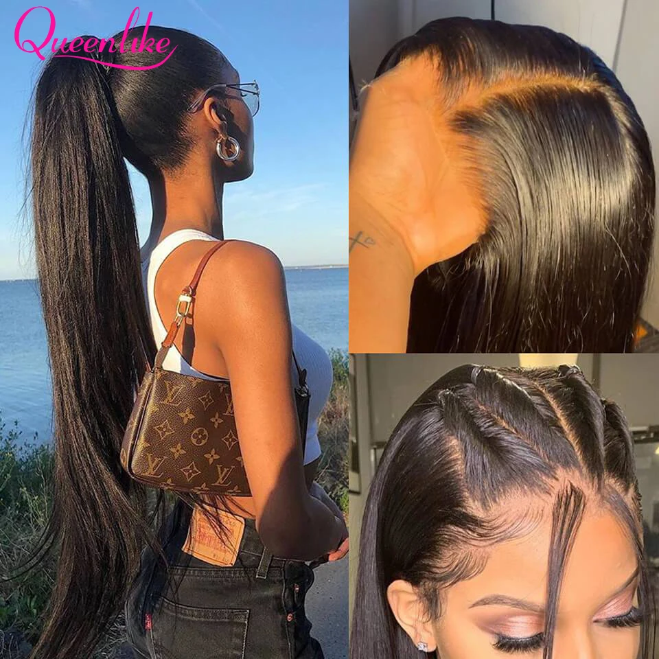 Парик из натуральных бразильских прямых волос, 40, 30 Дюймов, 5x5, 6x6, с застежкой, для чернокожих женщин, 13x6