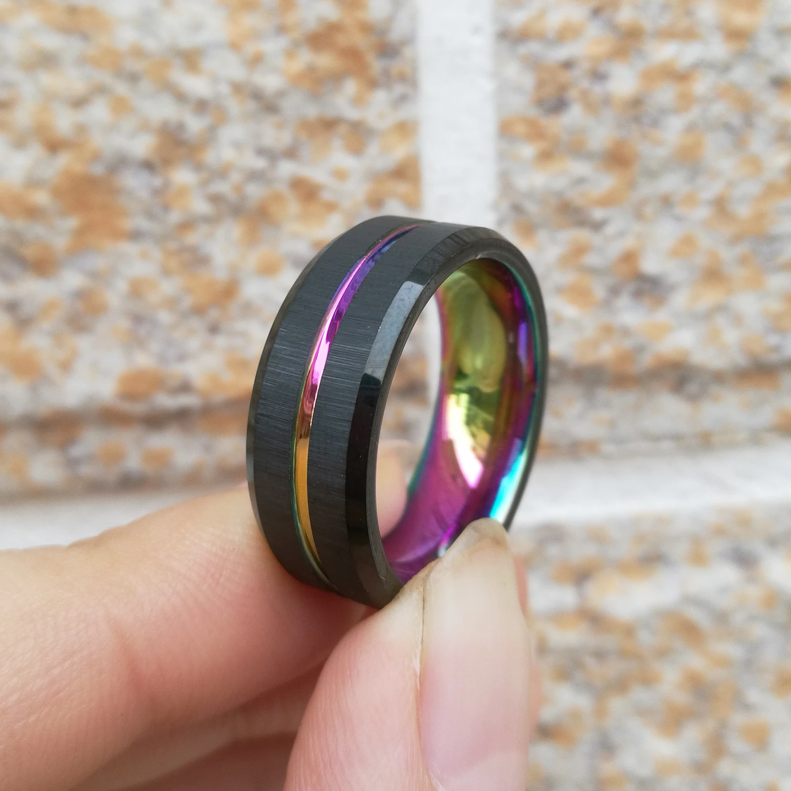 Я недавно купил кольцо карбида вольфрама новых людей шарма и я не смог быть счастливее с моей покупкой! Кольцо просто потрясающее, с гладкой черной отделкой и уникальной радужной промежуточной канавкой, которая бросается в глаза. Не только стильно, но и исключительное качество, и ясно, что это кольцо было сделано на долго. Идеальная посадка и невероятно удобно носить. Плюс, доставка была быстрой и надежной, что всегда плюс. Я очень рекомендую это кольцо всем, кто ищет качественное и стильное обручальное кольцо. Не стесняйтесь сделать эту покупку-вы не пожалеете об этом!
