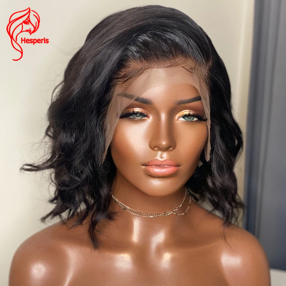 Hesperis натуральные волны 13x4 короткий Боб кружевной передний парик из человеческих волос бразильские волосы Remy 130% плотность кружевной передний парик для черных женщин