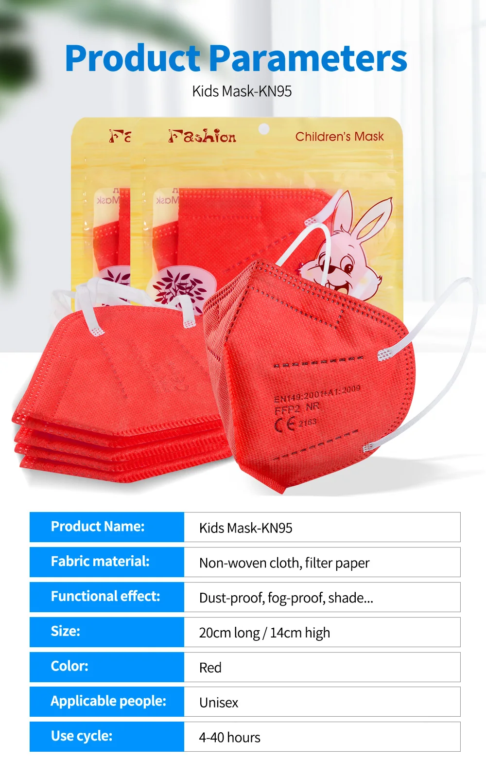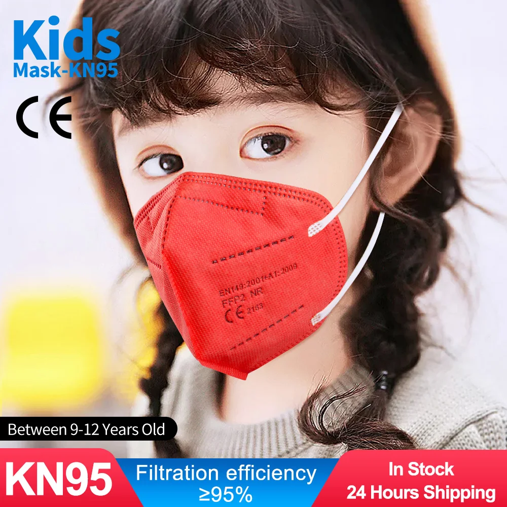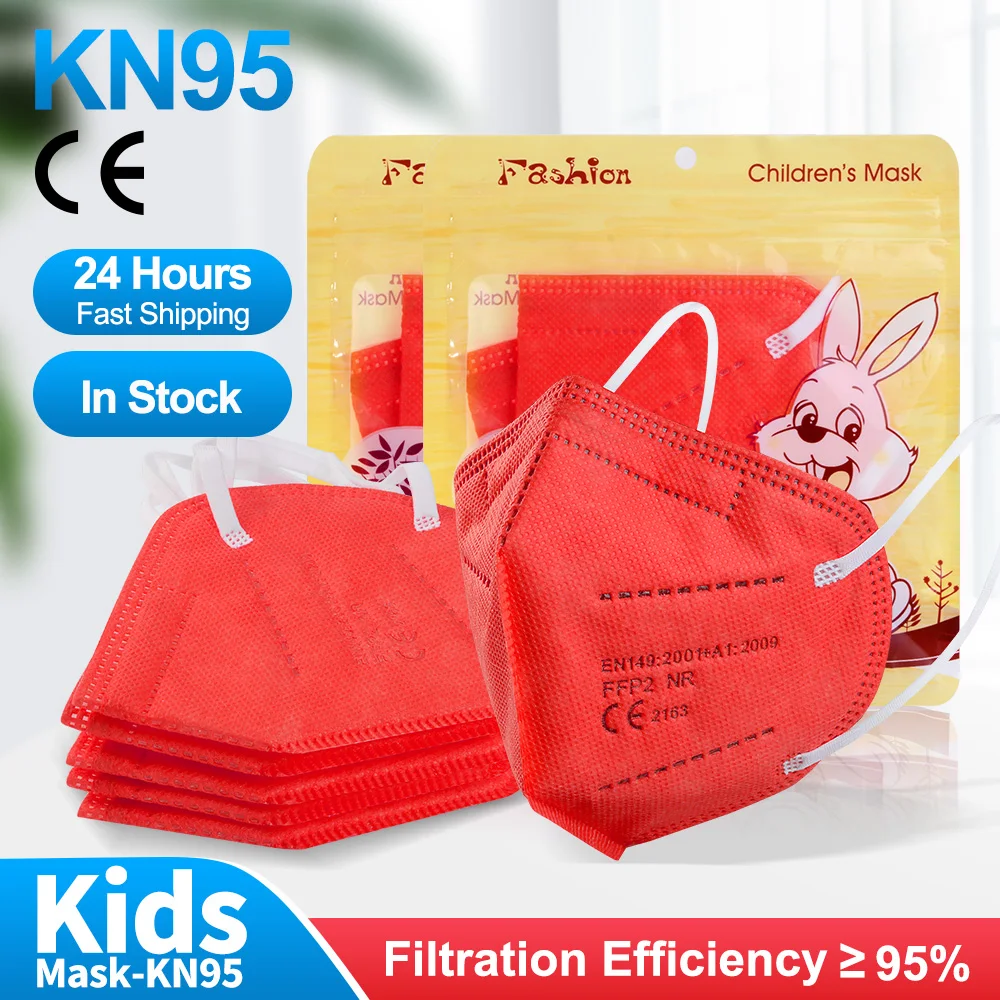 Красная детская маска FFP2 KN95 цвета 5 слоев детская маска для лица хлопковая одобренная CE Защитная Пылезащитная противотуманная маска ffp2 для детей