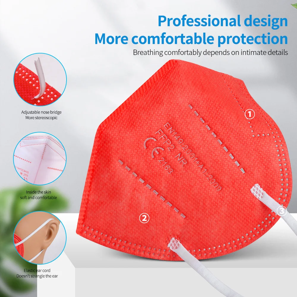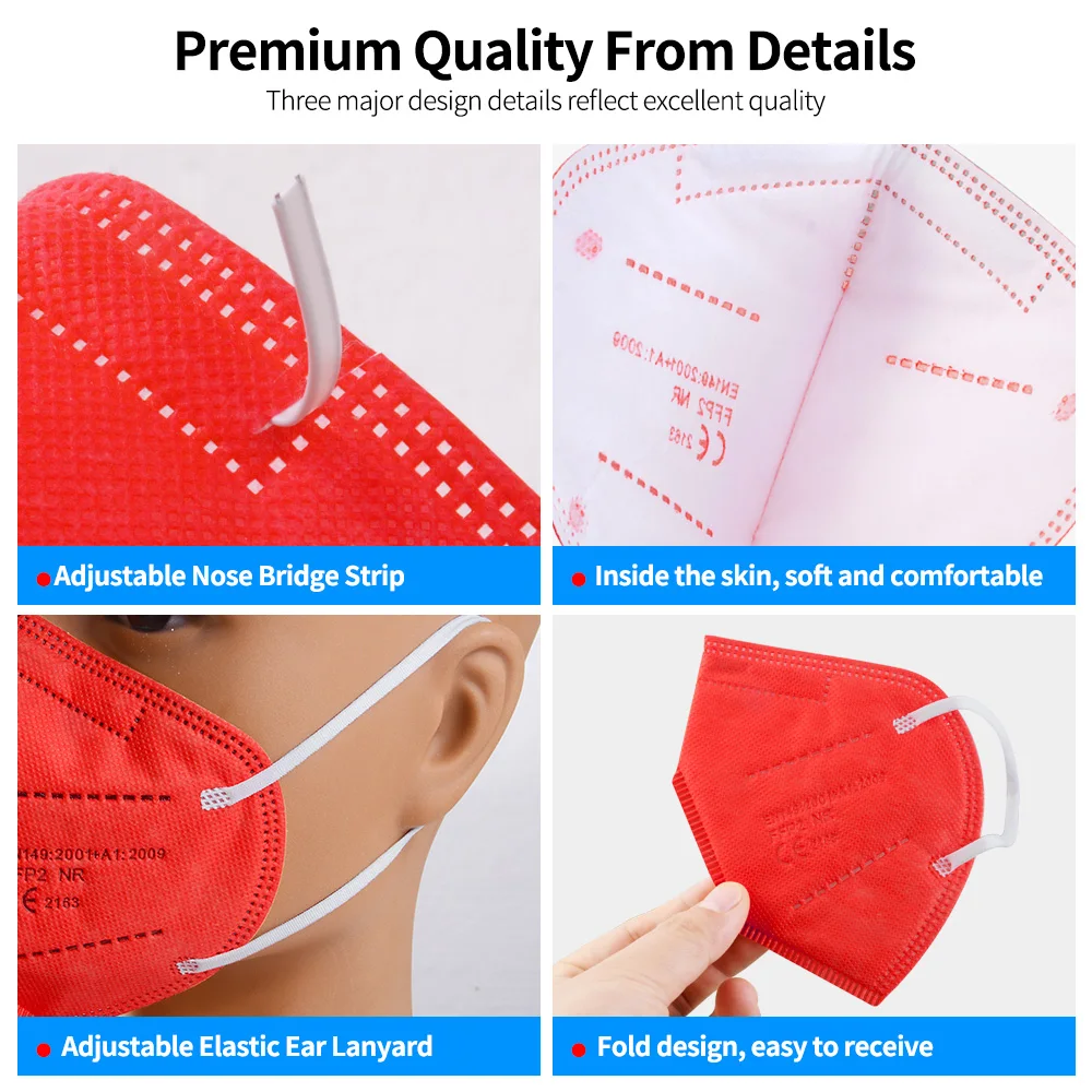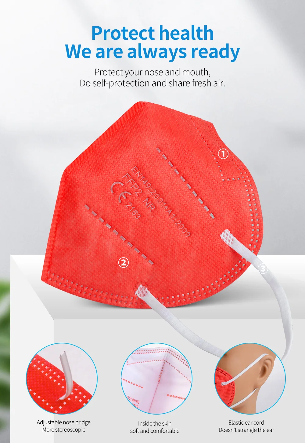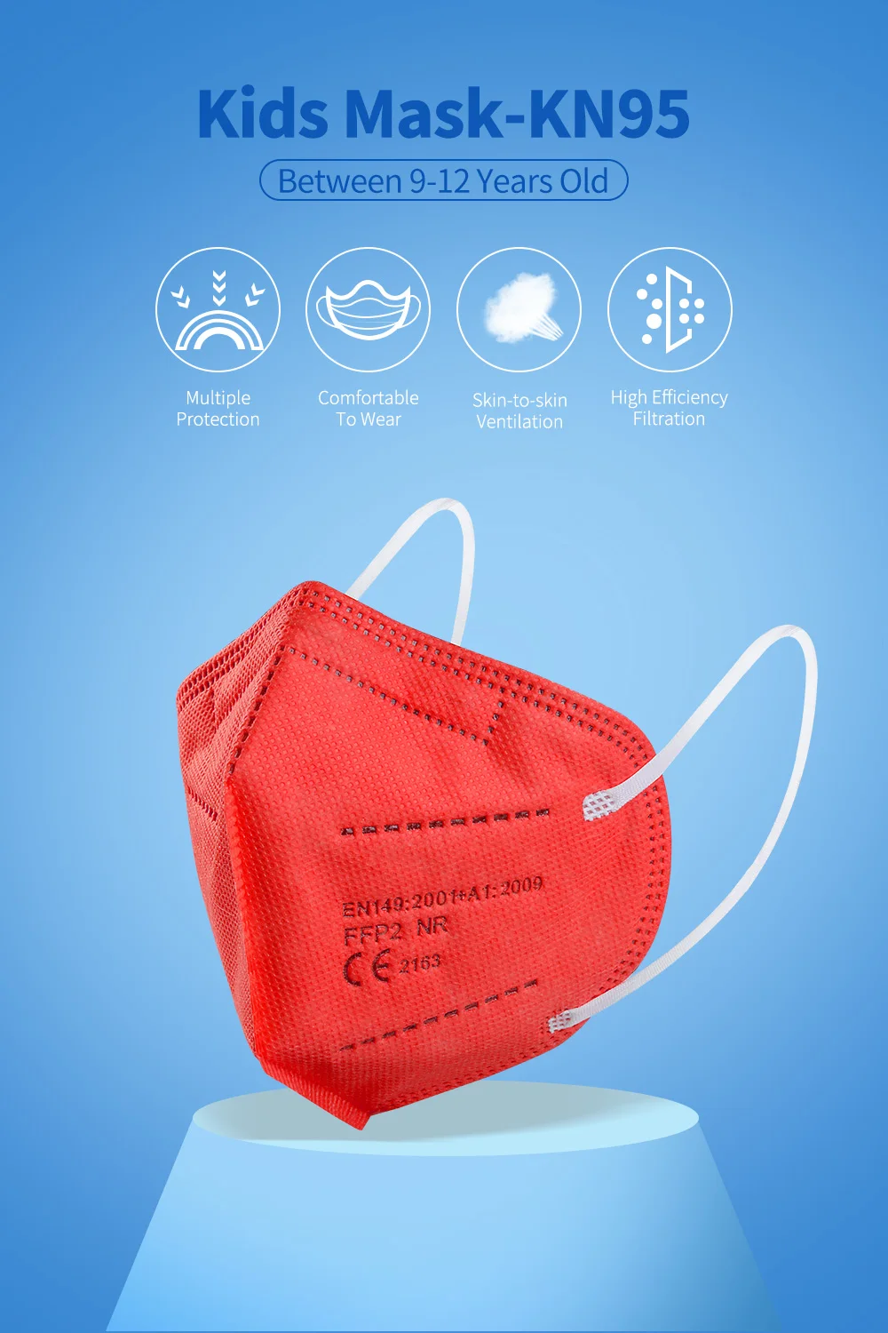 Красная детская маска FFP2 KN95 цвета 5 слоев детская маска для лица хлопковая одобренная CE Защитная Пылезащитная противотуманная маска ffp2 для детей