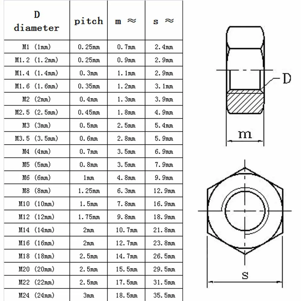 Шестигранная гайка из нержавеющей стали, 1100 шт., M1, M1.2, M1.4, M1.6, M2, M2.5, M3, M3.5, M4, M5, M6, M8, M10, M12, M14, M16, M18, M20, M22M24, DIN934, 304