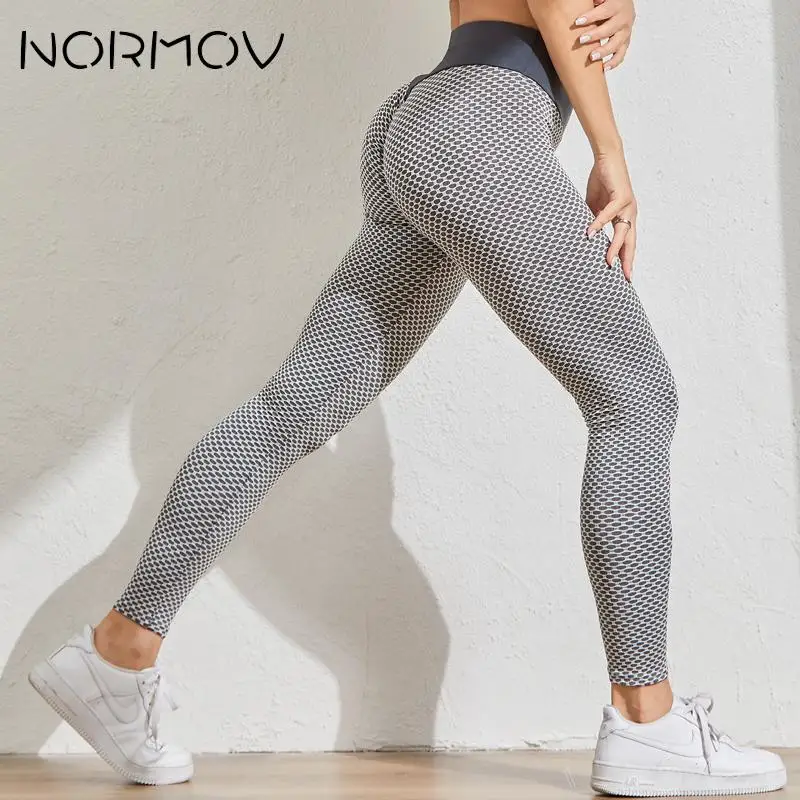 Женские леггинсы NORMOV с высокой талией, сетчатые Лоскутные Леггинсы пуш-ап, бесшовные эластичные персиковые штаны для йоги