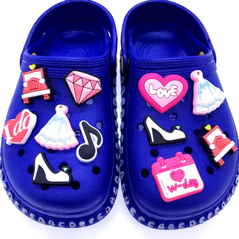 100 шт. из свадебной серии обувь браслет с подвесками с пряжкой розового цвета, в виде мультяшного ПВХ с рисунком крокодил для девочек на подарок к Отверстие аксессуары в виде тапочек