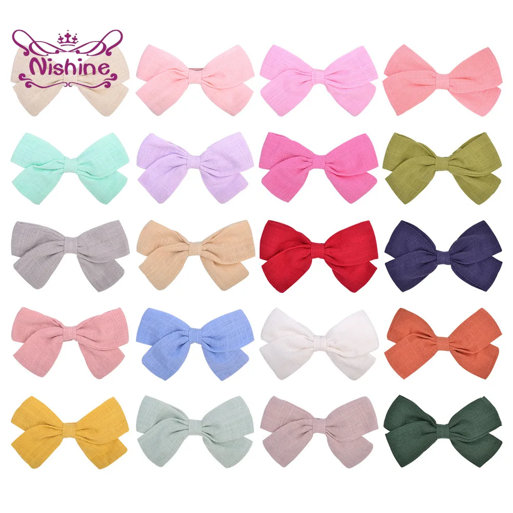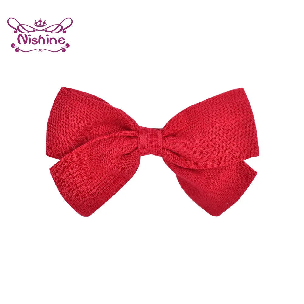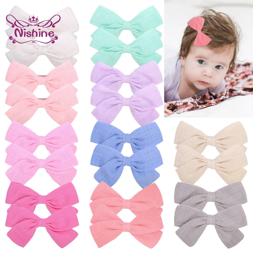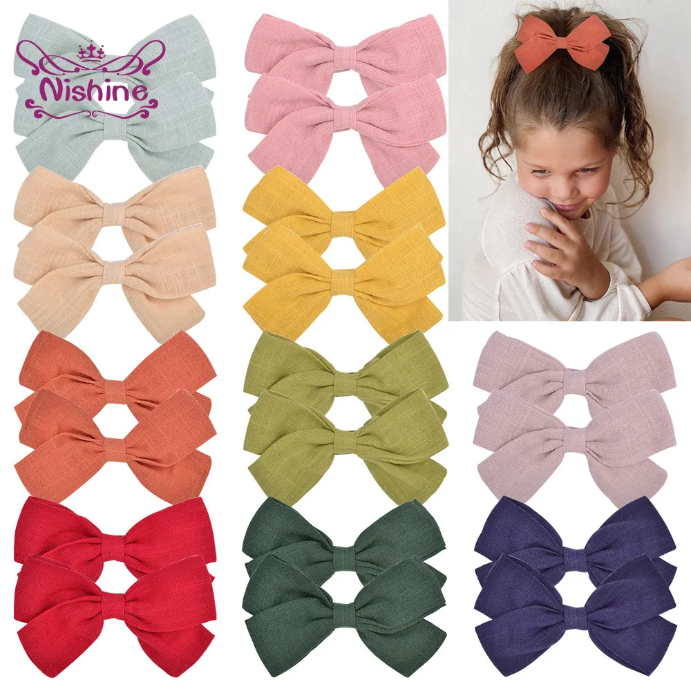 Симпатичные однотонные заколки для волос Nishine 2 шт.лот 3,6 дюйма из хлопка и льна с бантом детские заколки для волос для девочек Детские аксессуары для волос фото реквизит