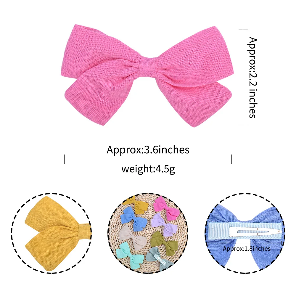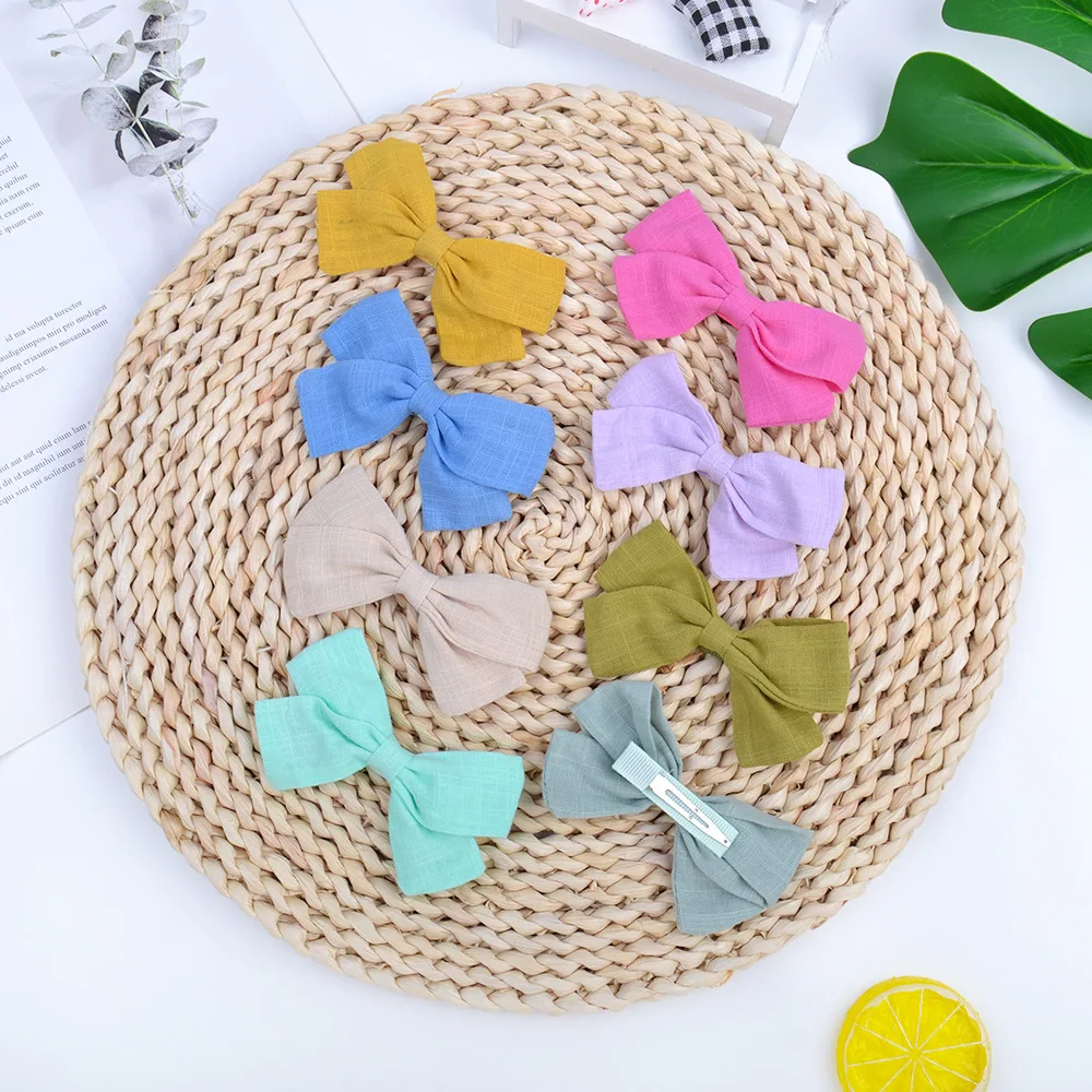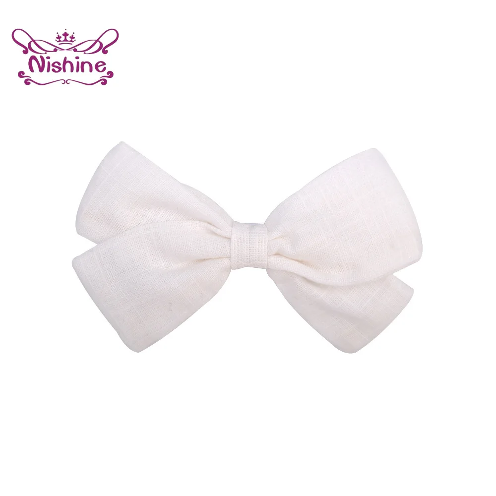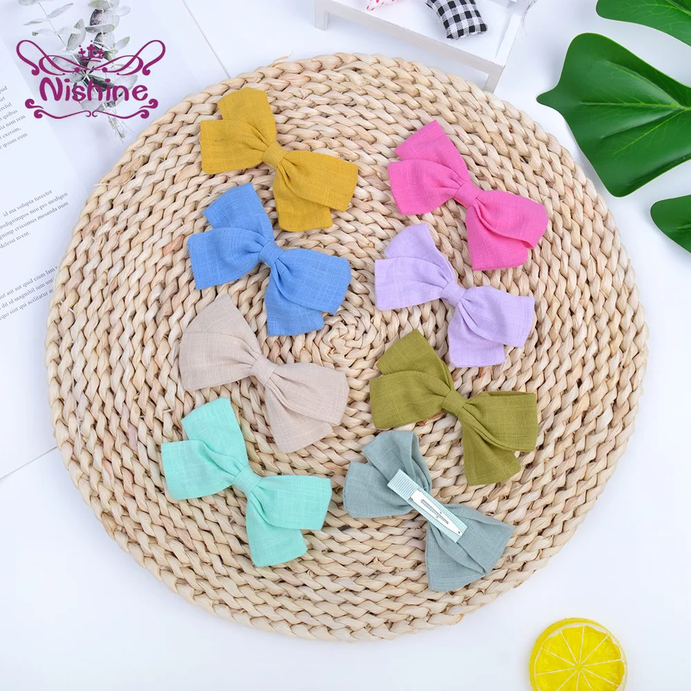 Симпатичные однотонные заколки для волос Nishine 2 шт.лот 3,6 дюйма из хлопка и льна с бантом детские заколки для волос для девочек Детские аксессуары для волос фото реквизит