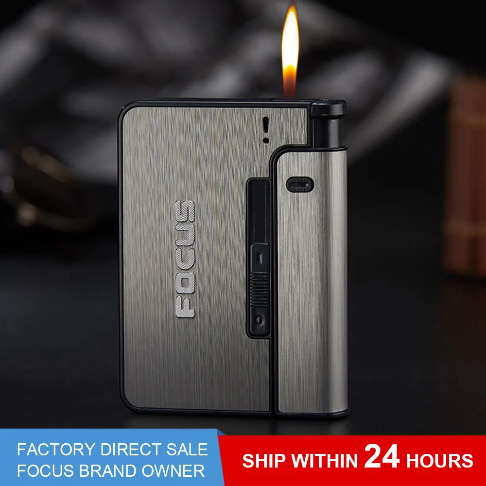 Чехол для сигарет с автоматическим фокусом, 10 шт., металлическая коробка, подходит для зажигалок, мужчин, женщин, курительных гаджетов, инструменты