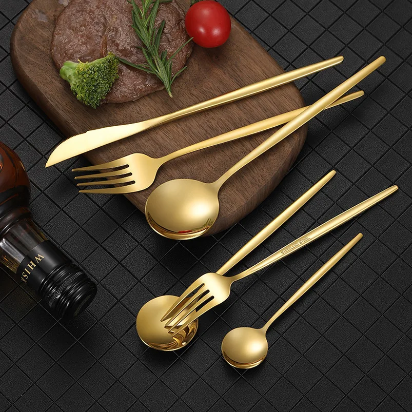 Набор столовых приборов и ложек из нержавеющей стали, золотые португальские столовые приборы знаменитости в Интернете, Западный нож для стейков, десертная ложка, кофейная ложка