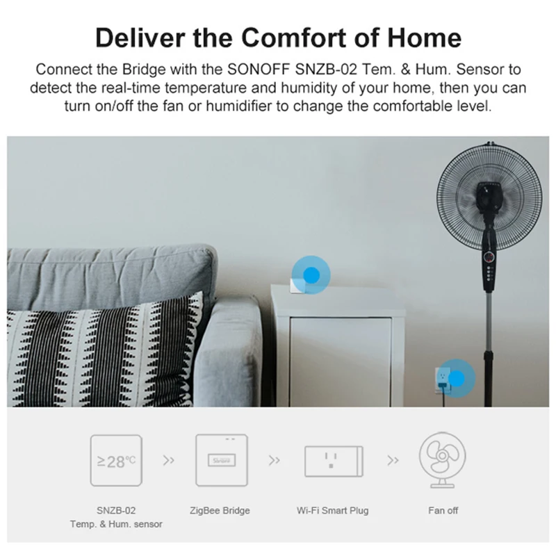 SONOFF ZigBee Bridge-это сердце умного дома, которое позволяет удаленно управлять различными устройствами и сенсорами ZigBee для мониторинга и контроля дома, И позволяет создавать умные сцены, чтобы смарт-Устройства Wi-Fi и ZigBee общались, чтобы получить доступ к умному дому и контролировать их все с помощью приложения eWeLink. Это увеличивает эффективность до 32 подключенных подустройств, которые являются переключателями на основе ZigBee, вилками и датчиками безопасности.Смарт-переключатель SONOFF BASICZBR3 Wi-Fi,S31 zb Lite smart plugБеспроводной переключатель SONOFF ZigBee и датчики, такие как датчик температуры и влажности, датчик движения и беспроводной датчик двери/окна, могут быть подключены к мосту, чтобы дать вам возможность создавать различные связи сцены. Что касается большего количества поддерживаемых устройств, мост также может работать с смарт-переключателем, датчиком температуры и влажности, motion, беспроводным датчиком двери/окна и датчиком воды, которые сертифицированы ZigBee Alliance. Сопряжение всех подустройств одним нажатием, быстрее, чем сопряжение Wi-Fi. Он поддерживает добавление камеры на мост или подустройства, удобно просматривать ваш дом на любом из них. Также можно использовать Alexa или Google Home для голосового управления вашим домом.