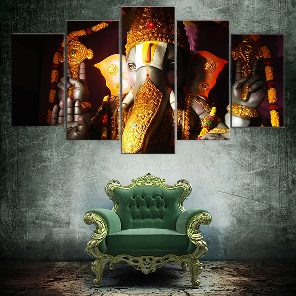 Модульные картины Домашний Декор для гостиной постер Ганеша рамка 5 шт. слон Ганеш индийская религия лорд баладзи холст живопись