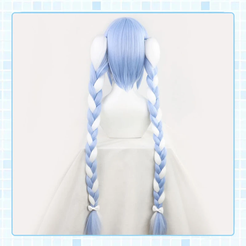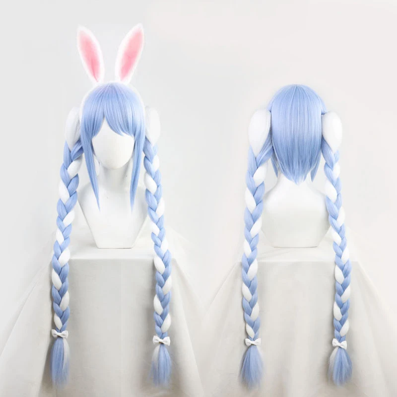 VTuber Usada Beijing Ora Парик Косы хвост Hololive фантазия Банни девушка уши косплей синий белый Синтетические длинные плетеные волосы