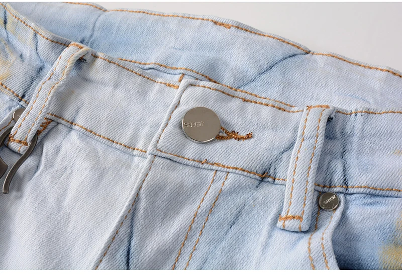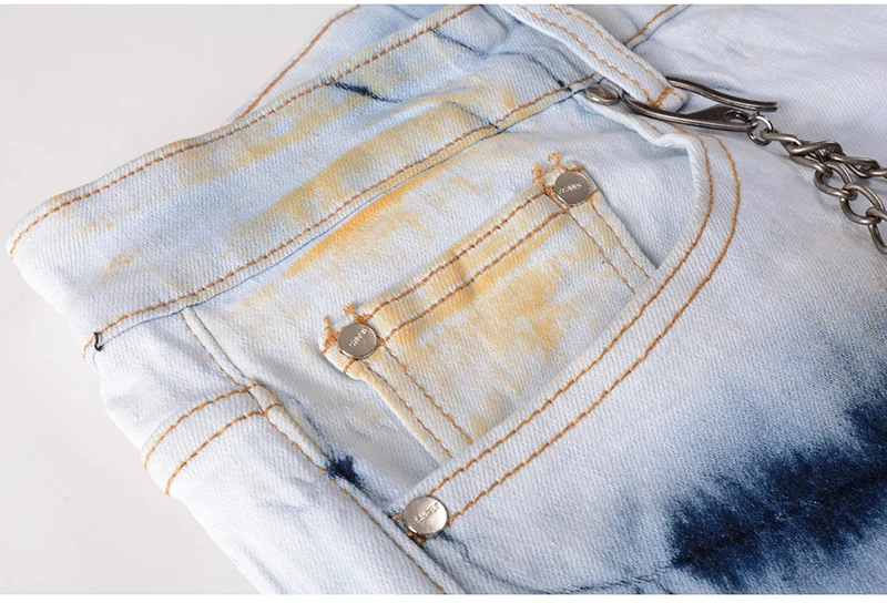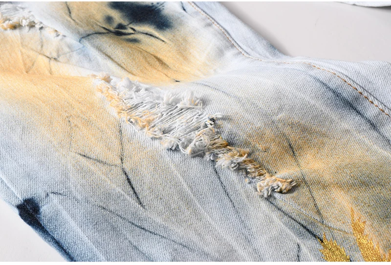 Мужские красивые джинсы с принтом для девочек, модные тонкие Стрейч...
