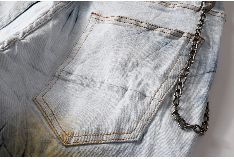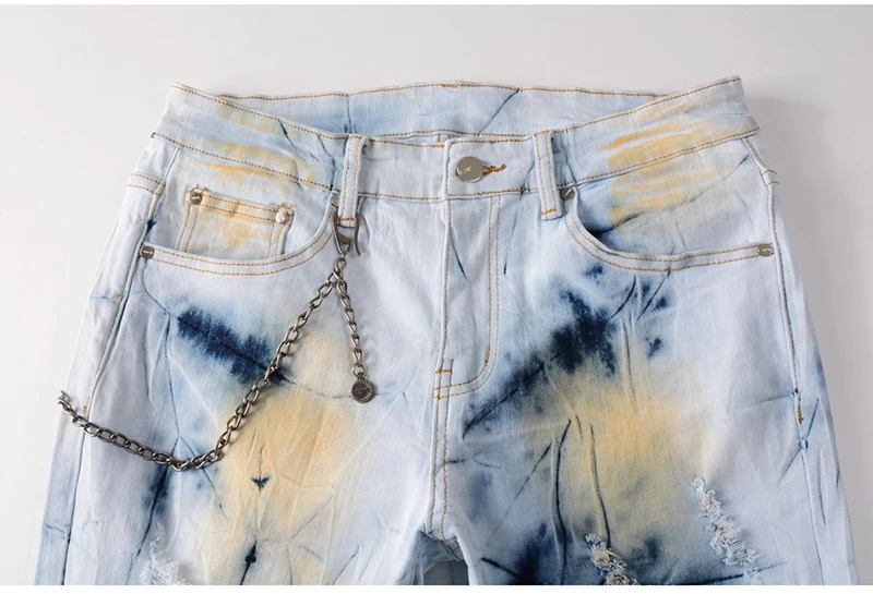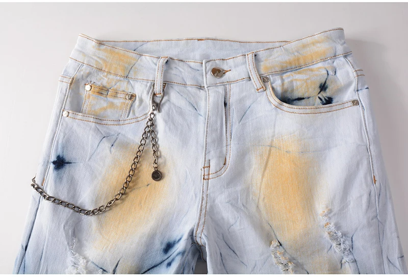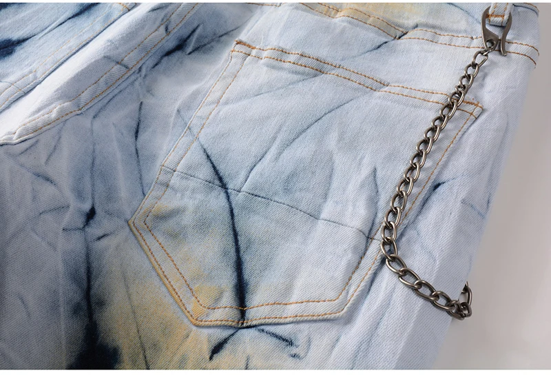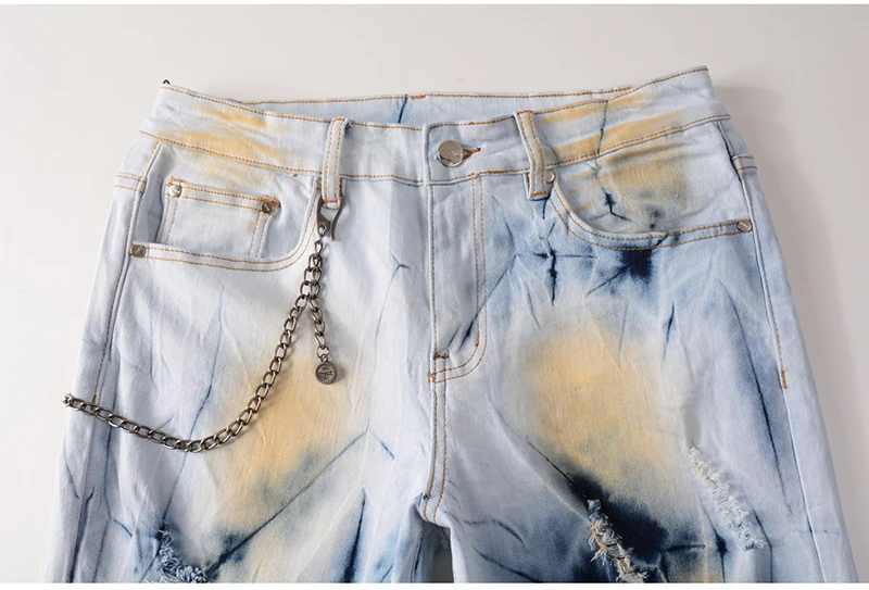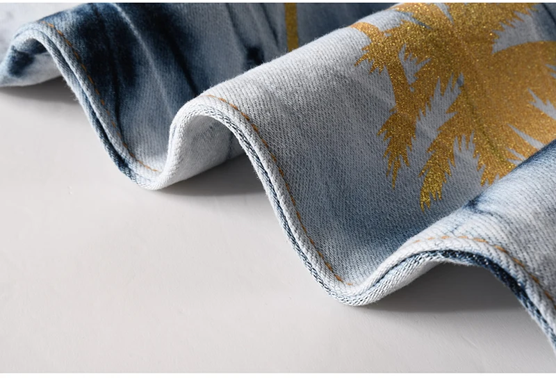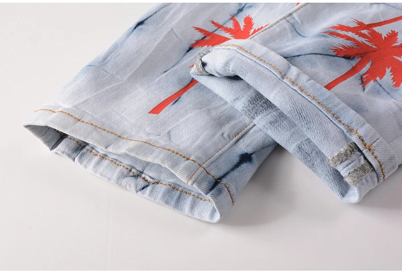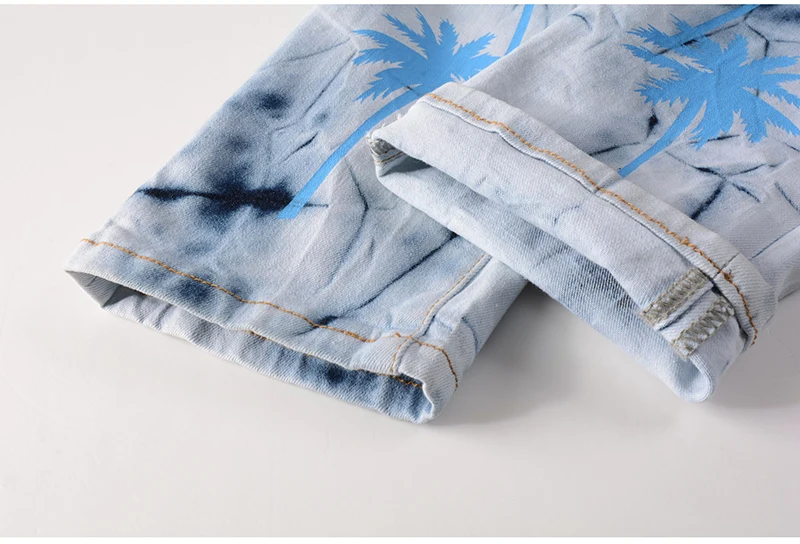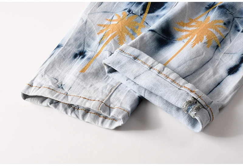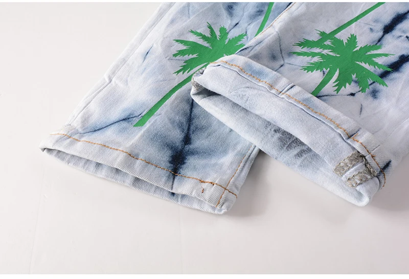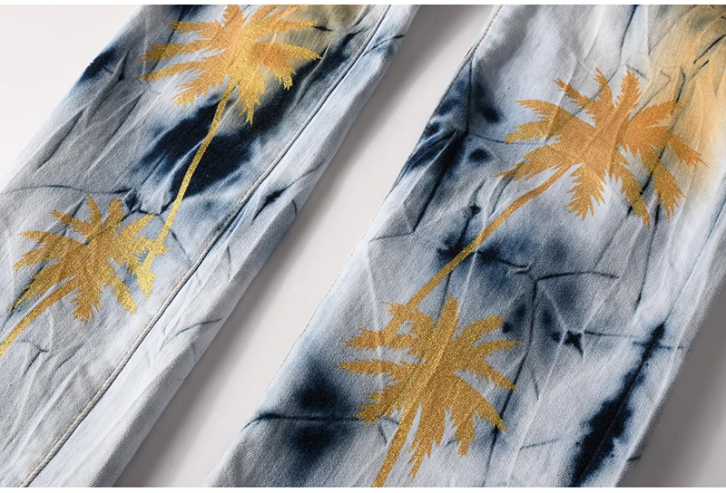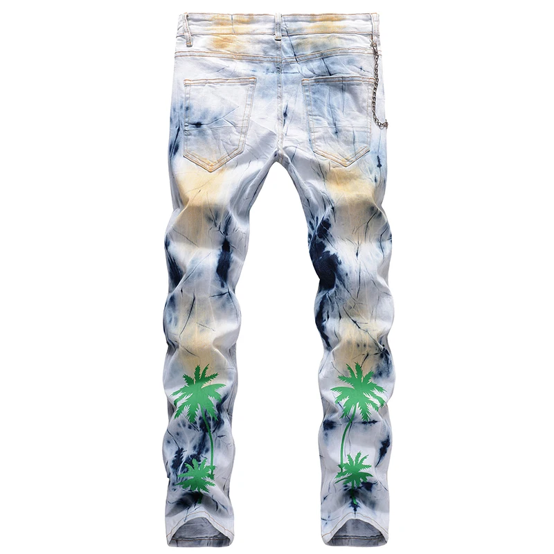 Мужские рваные джинсы с принтом кокосовой пальмы и цепочкой Y2K, уличная одежда, узкие Стрейчевые джинсовые брюки