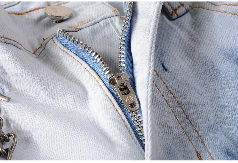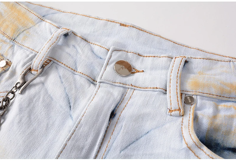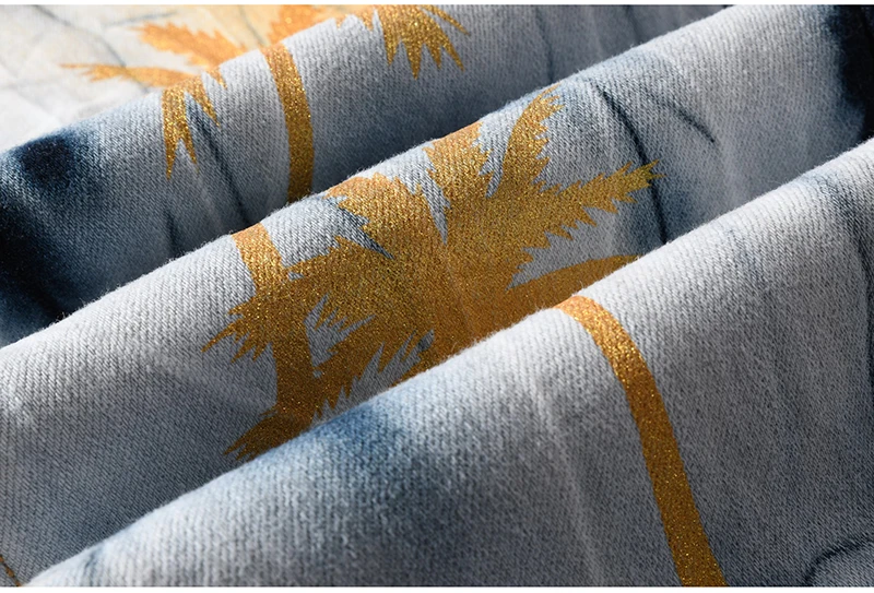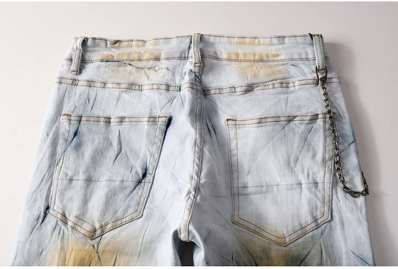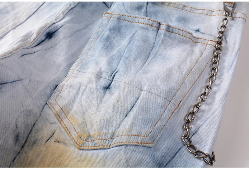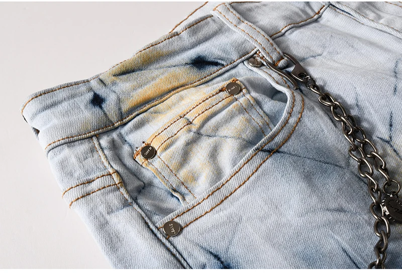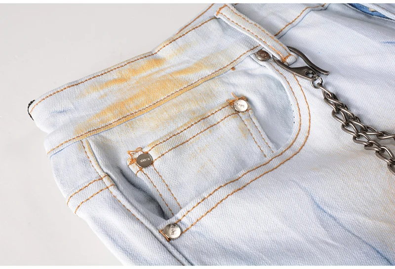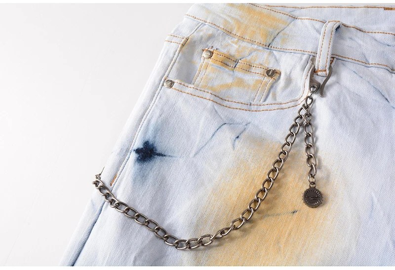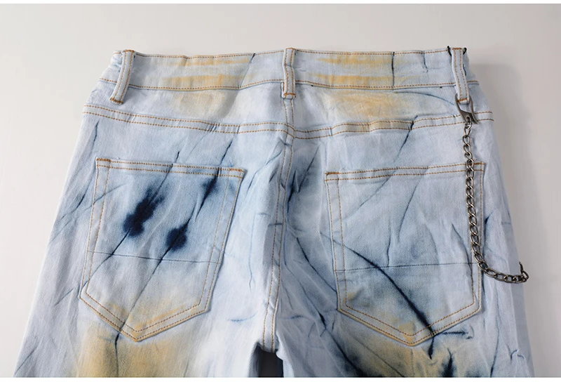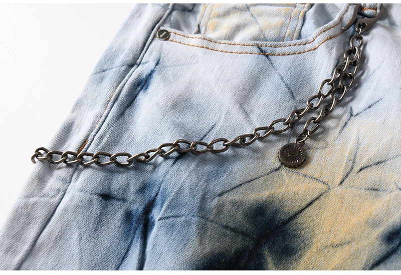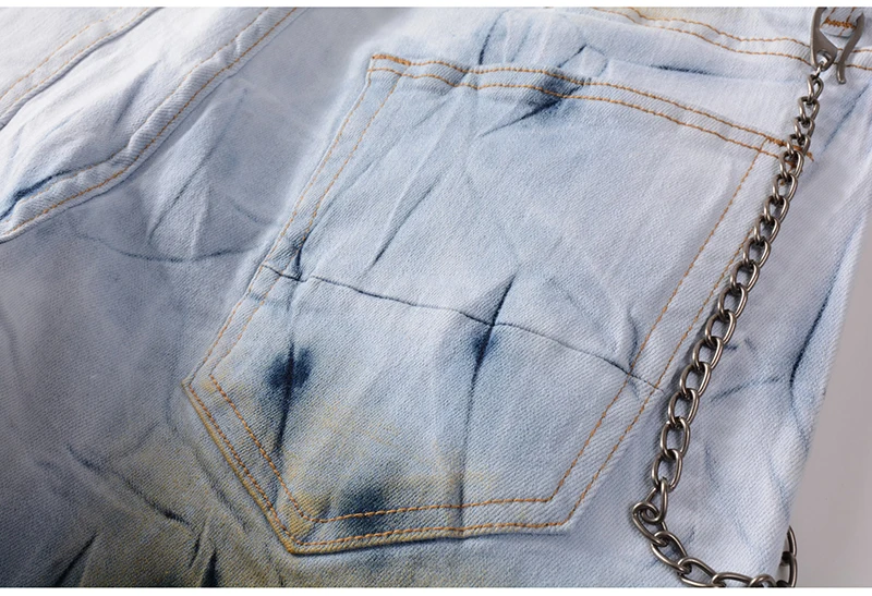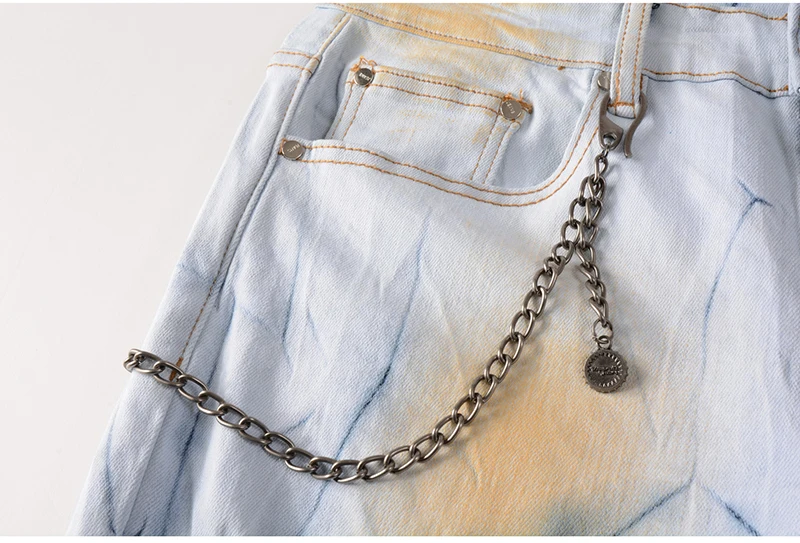 Мужские рваные джинсы с принтом кокосовой пальмы и цепочкой Y2K, уличная одежда, узкие Стрейчевые джинсовые брюки