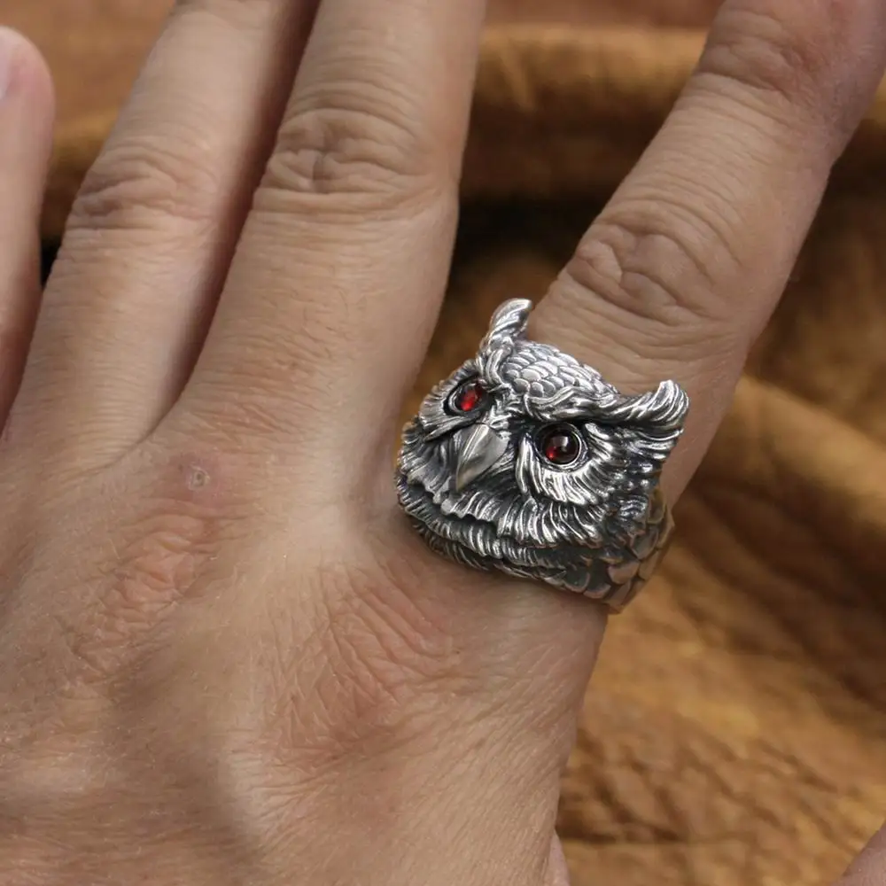 LINSION 925 пробы серебряные CZ глаза Сова Кольцо мужское байкерское панк кольцо TA261 американский размер от 7 до 15