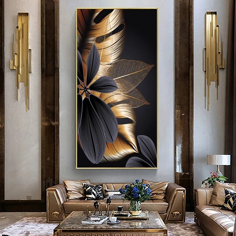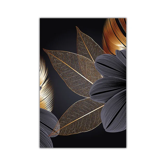 Плакаты на холсте с изображением черных и золотых растений, домашни...