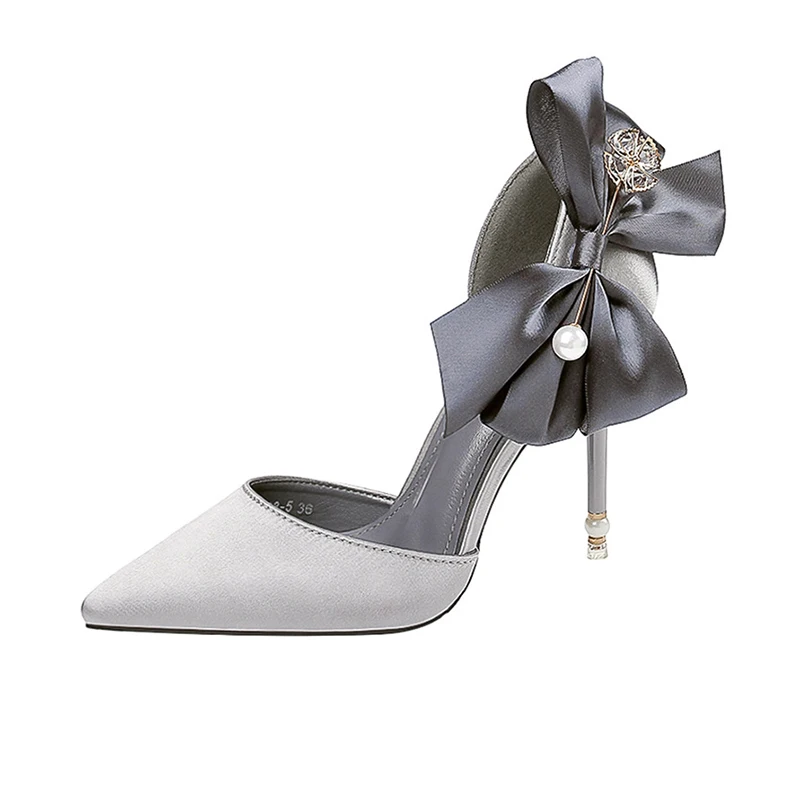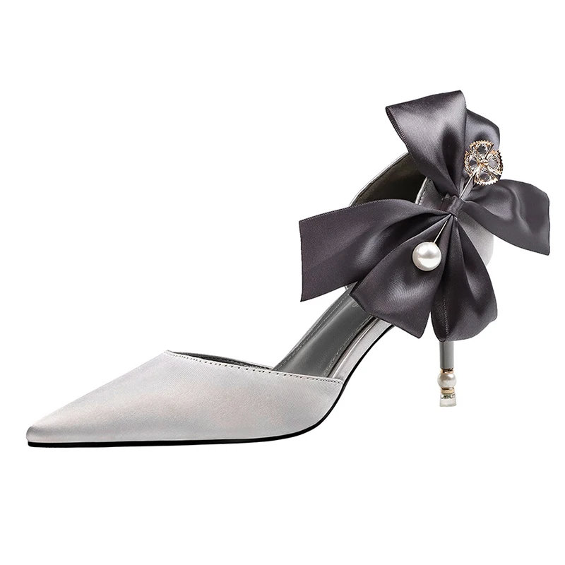 Модные женские туфли-лодочки на высоком каблуке с бантом, шелковые женские туфли на шпильке, свадебные туфли с жемчугом, пикантные босоножки на высоком каблуке, женская обувь