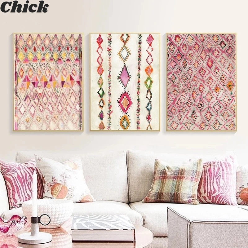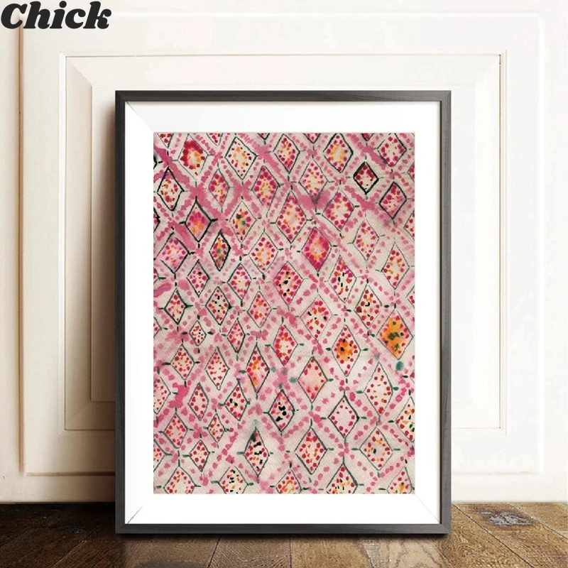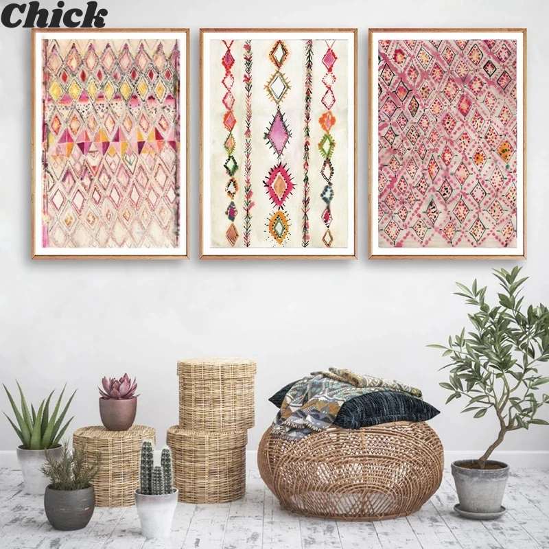 Марокканский ковер, розовые постеры и принты, эклектическое украшение для дома, богемное искусство, живопись на холсте, картина для украшения стен