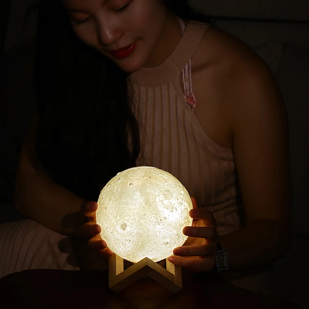 Перезаряжаемая лампа в форме Луны, 2 цвета, 3D светильник ный выклю...