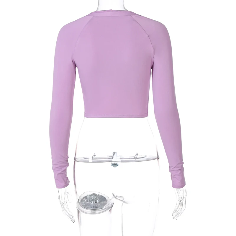 Женский пуловер, Однотонная футболка с V-образным вырезом и длинным рукавом, укороченный топ на лето-осень, черный, фиолетовый, оранжевый, кофейный