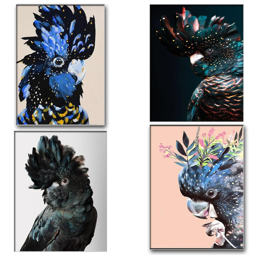 Австралия Алмазная с изображением птицы Картина черный Какаду настенное искусство Алмазная мозаика синий попугая в искусстве для гостиная украшения