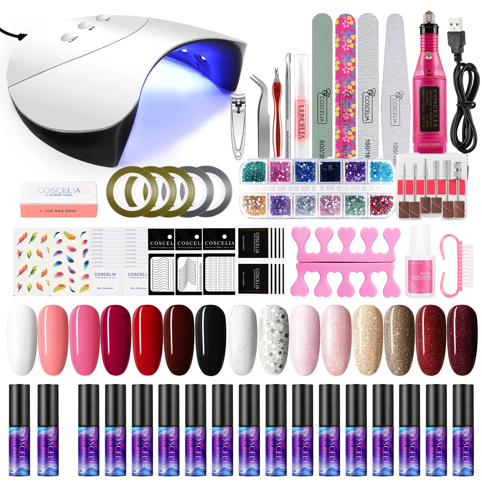 Набор гель-лаков COSCELIA с дрелью, маникюрный аппарат, комплект полуперманентного лака для ногтей, сушилка, лампа, инструменты для ногтей, все для маникюра