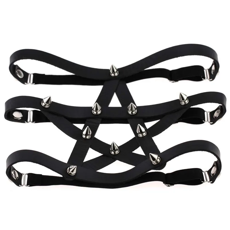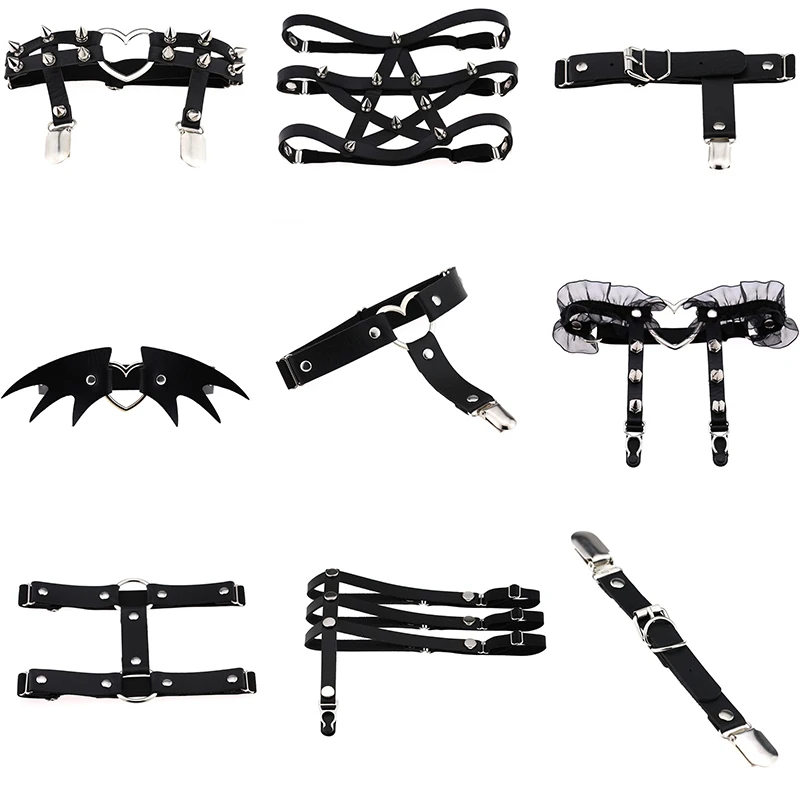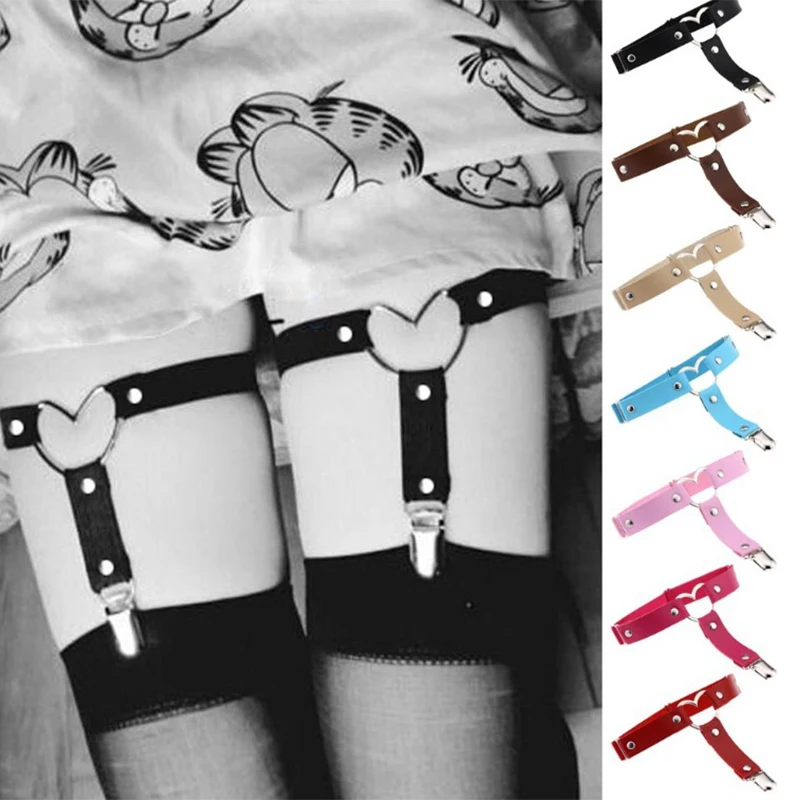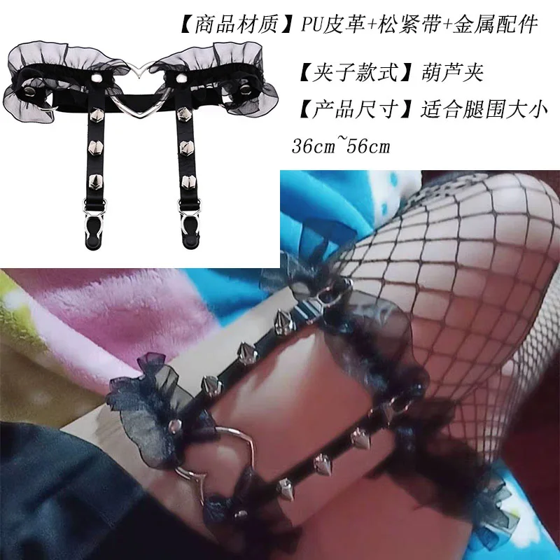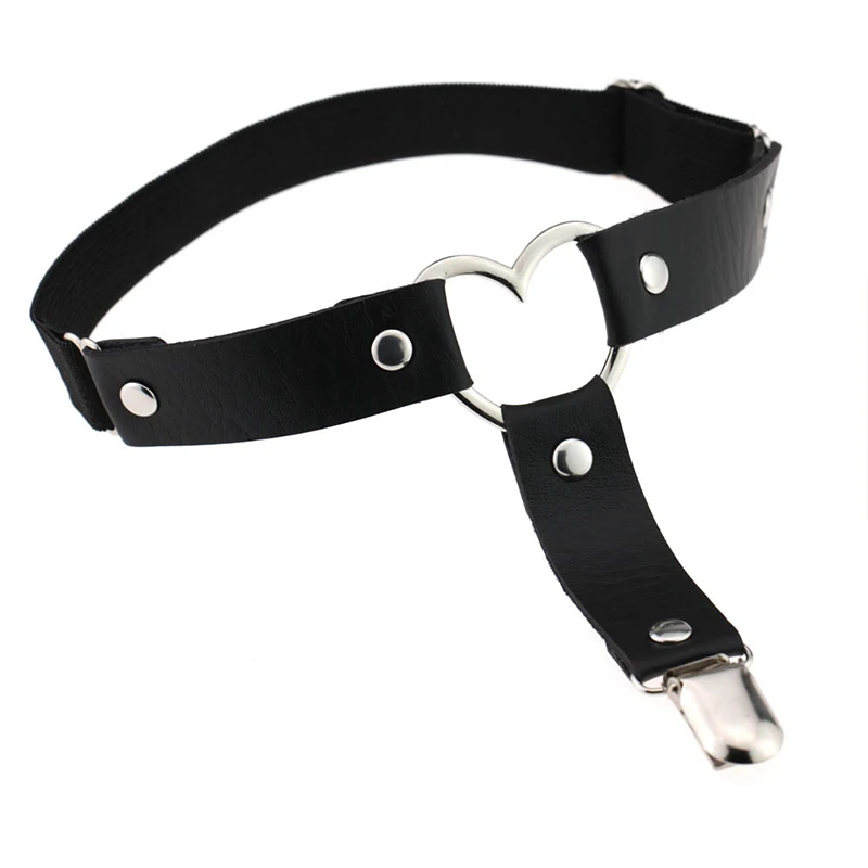 Портупея для ног, пикантные искусственная кожа на ногу с цепочкой в форме сердца, в стиле панк, подвязка с заклепкой, черный Регулируемый бандаж в стиле рок, популярный ножной браслет для гот