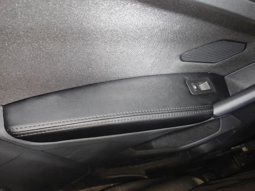 Качество кожи очень хорошее, лопатки тоже очень даже в тему. Минус - приходится много подрезать, но отрезать - не приклеить. А так смотрится хорошо, не царапается, заказал себе еще в комплект для центрального подлокотника. Клеить на скотч не стал, держится хорошо итак.