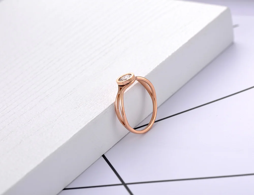 Кольцо JeeMango из титановой нержавеющей стали женское, простое ювелирное изделие под розовое золото с кристаллами кубического циркония для коктейвечерние, для девушек и женщин JR20029