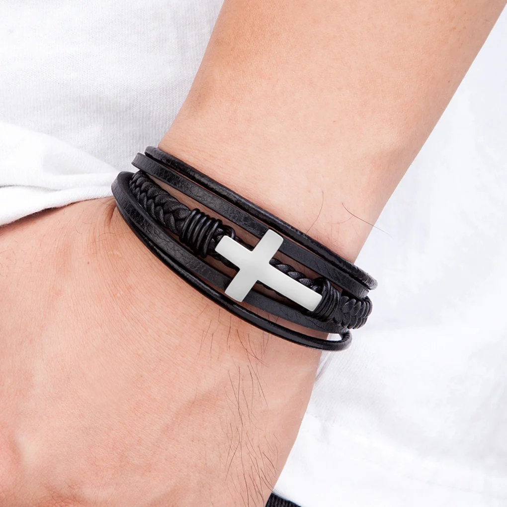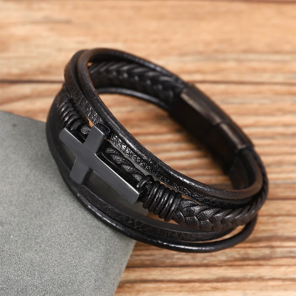 Крест Стиль мульти Слои дизайн из нержавеющей стали модные мужские кожаные браслеты классический подарок для мужчин многоцветный