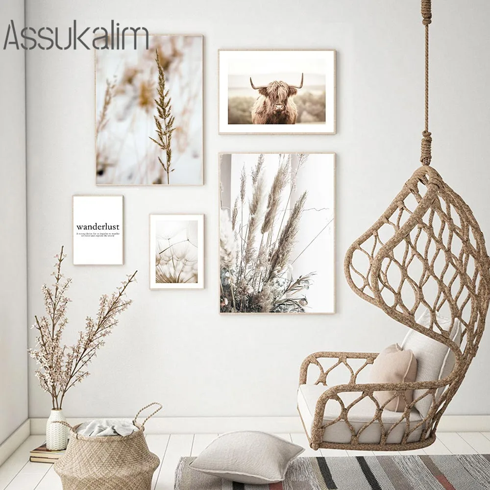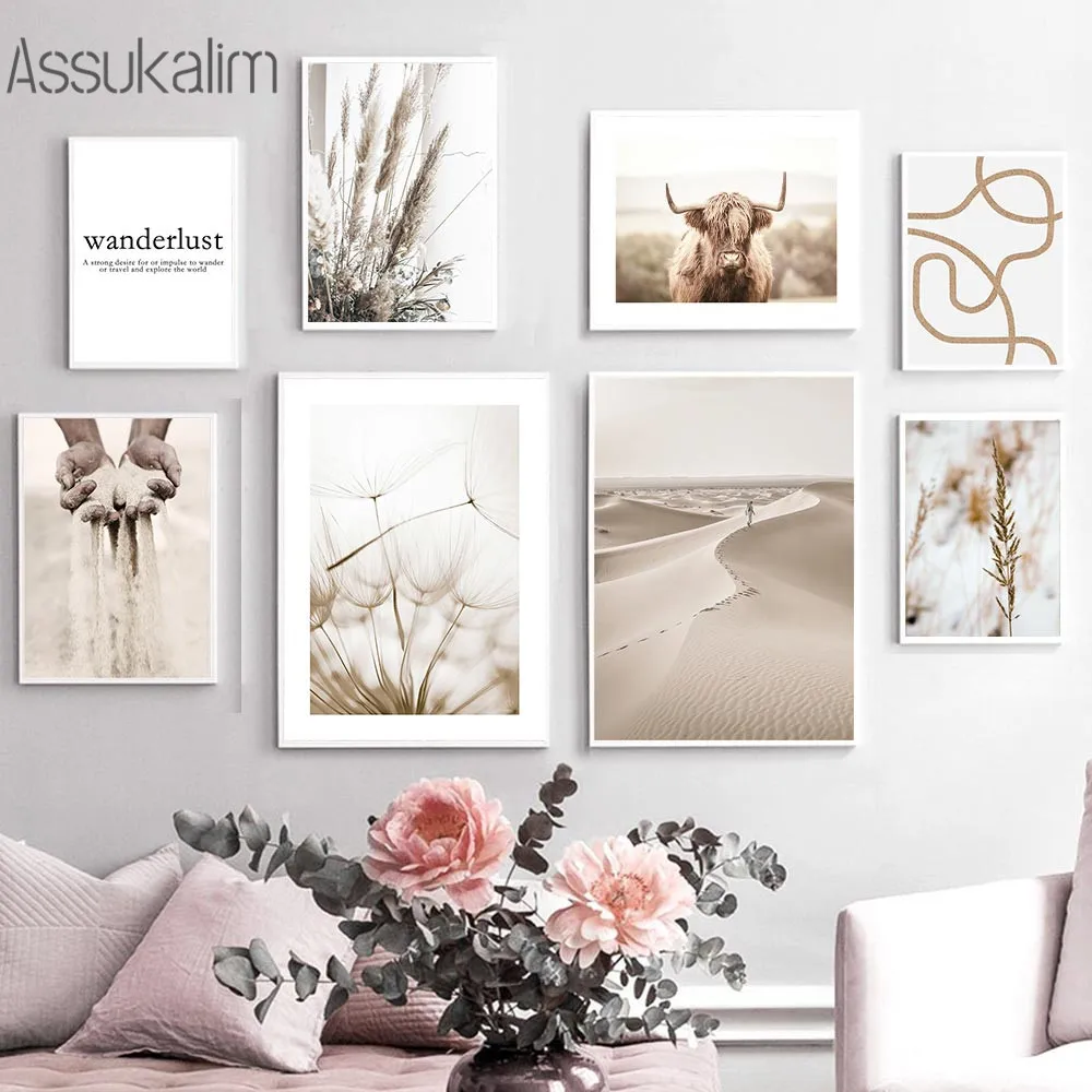 Картина на холсте с изображением песка, пустынного пейзажа, одуванчиков, плакат растений, скандинавские настенные картины, украшение для гостиной