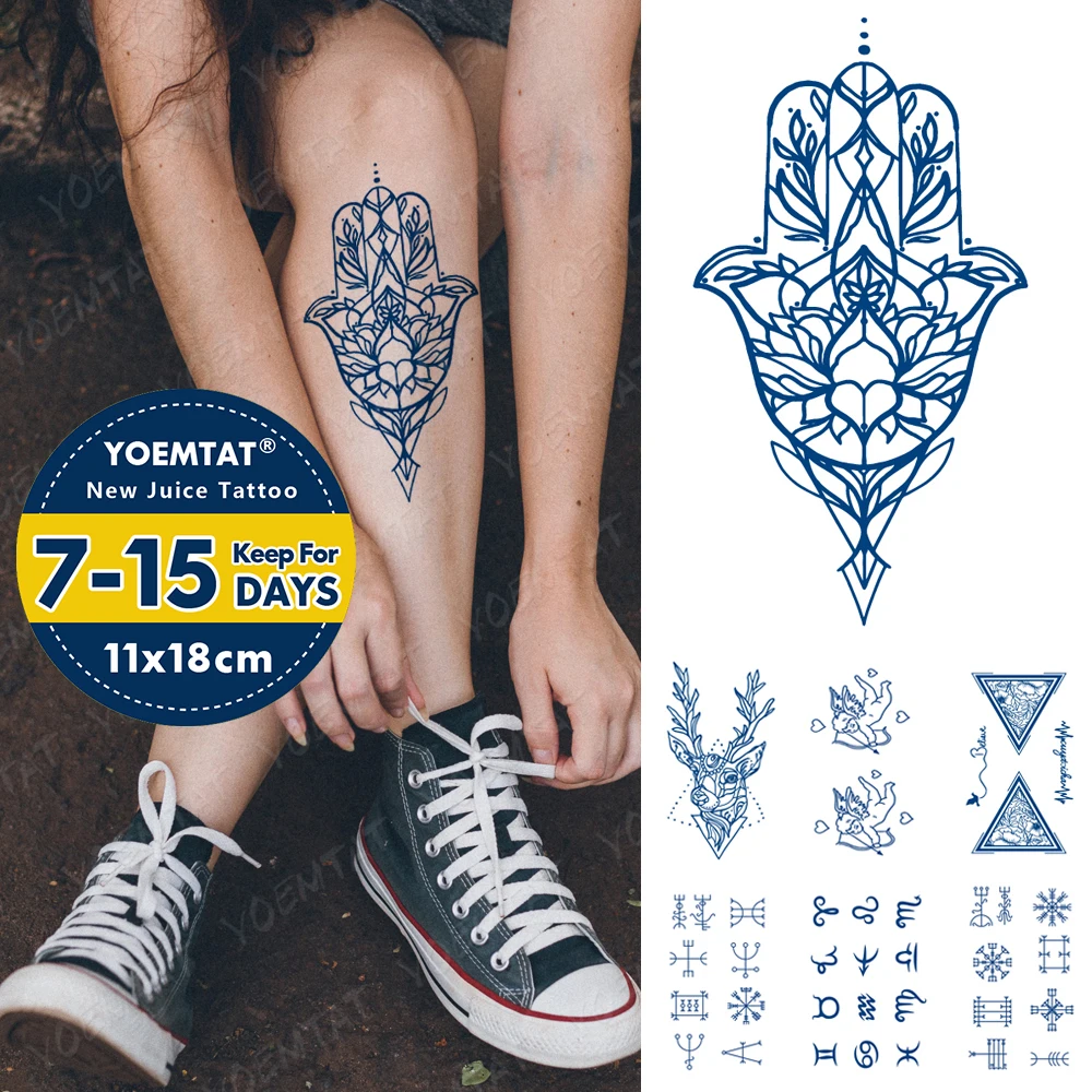 Сок чернила татуировки, боди-арт прочного Водонепроницаемый временная татуировка Стикеры рука Фатимы тату для рук в форме искусственных цветов оленя татуировки золотого и серебряного Для женщин Мужчины