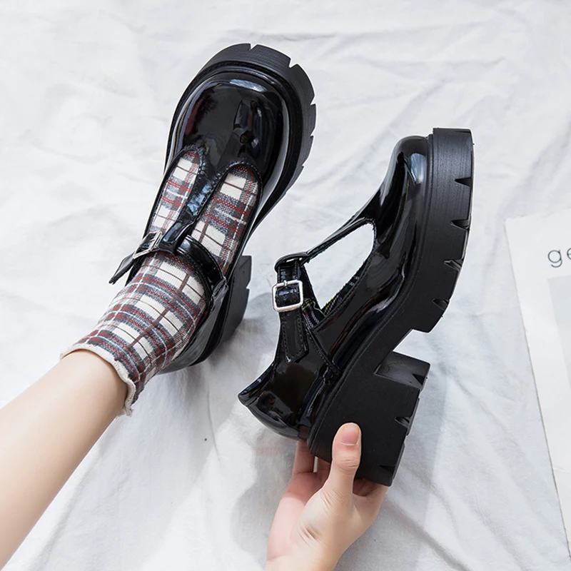 Обувь в стиле Лолиты; Кожаные туфли на не сужающемся книзу массивном каблуке; Женские модели; Туфли Mary Jane; Женская обувь на платформе в стиле ретро на высоком каблуке в японском стиле