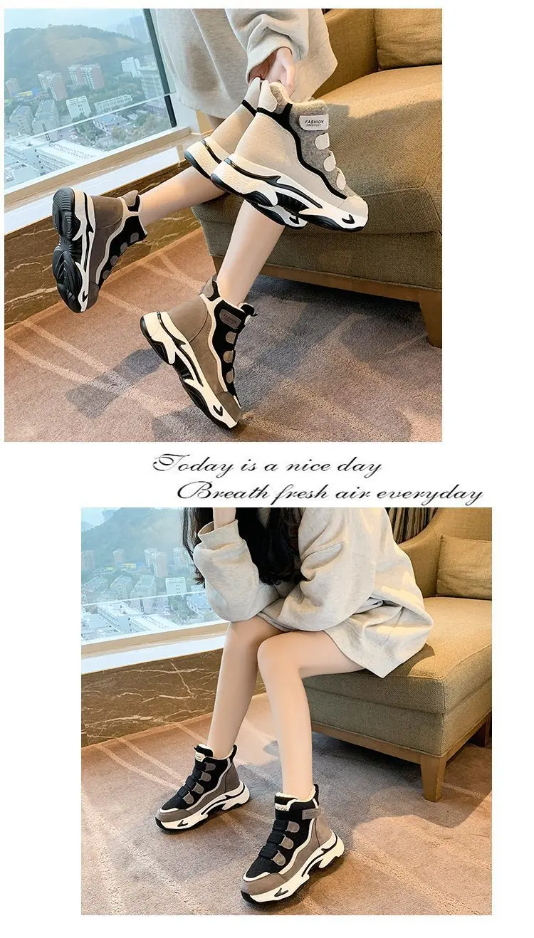 Женские кроссовки на высоком каблуке, массивные кроссовки, плюшевые зимние сапоги, танкетке, обувь на платформе для девочек, кроссовки, женская обувь с увеличенной высотой