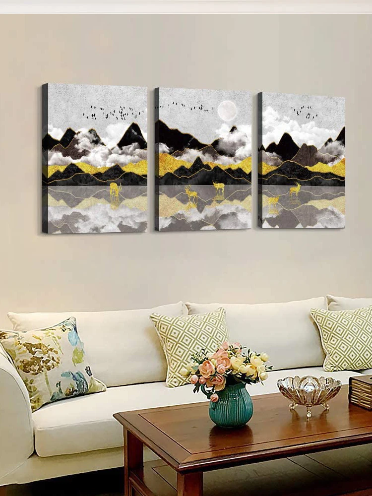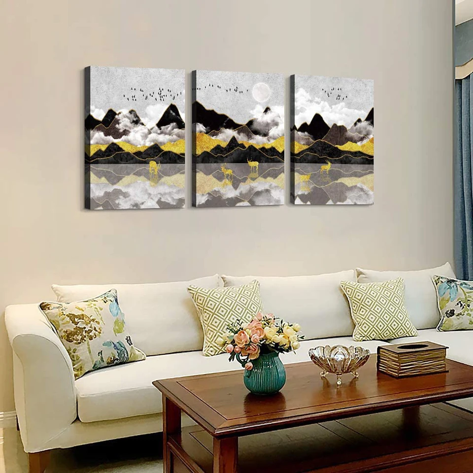 Полный квадрат/круглая Алмазная картина золотые линии абстрактные горы картины Стразы DIY Алмазная вышивка продажа Триптих