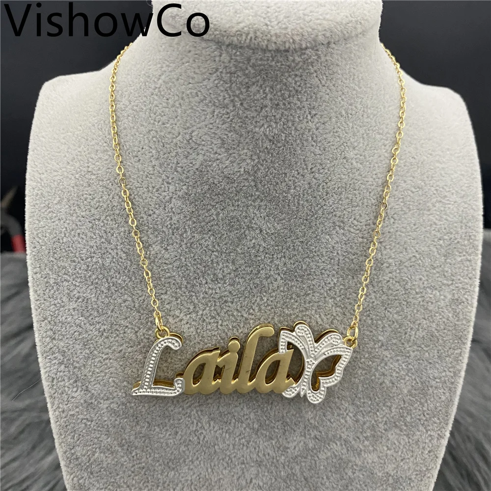 Индивидуальное ожерелье с именем VishowCo, двойное позолоченное оже...
