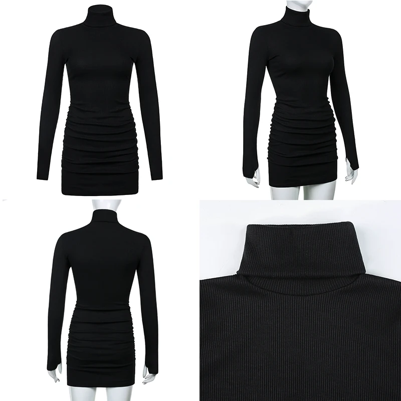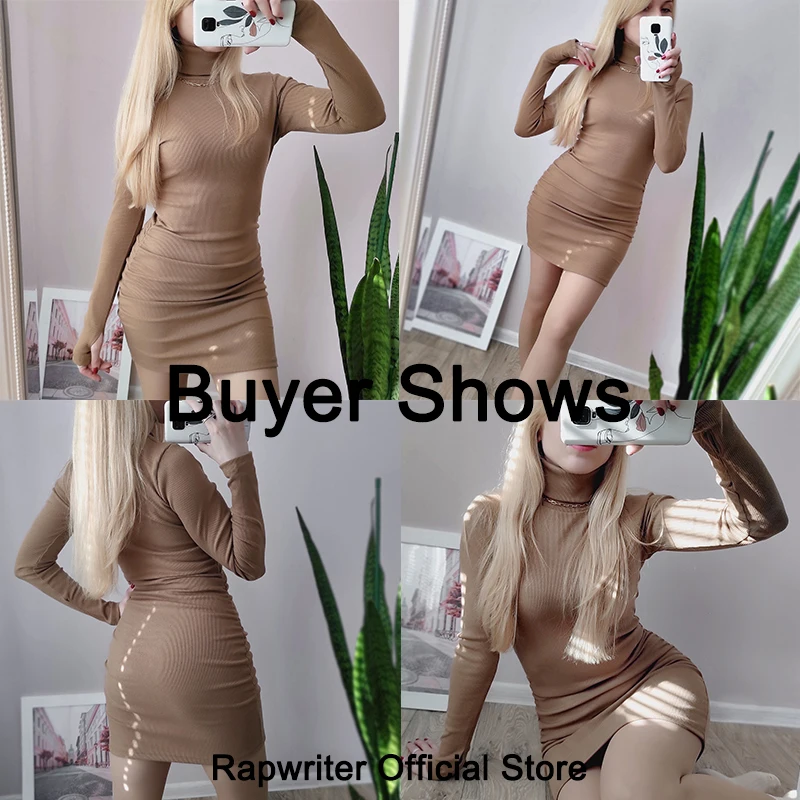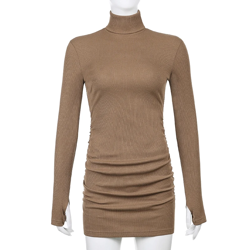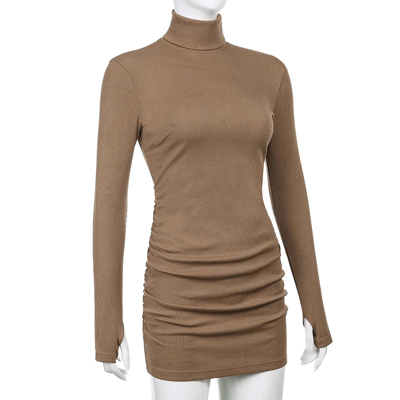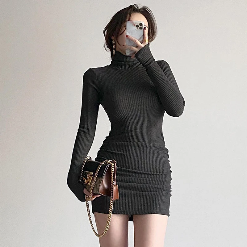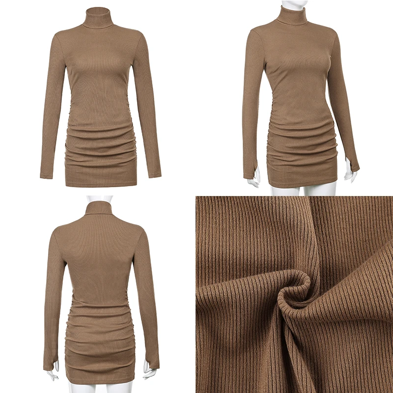 Женское Короткое платье-футляр с длинным рукавом, в рубчик