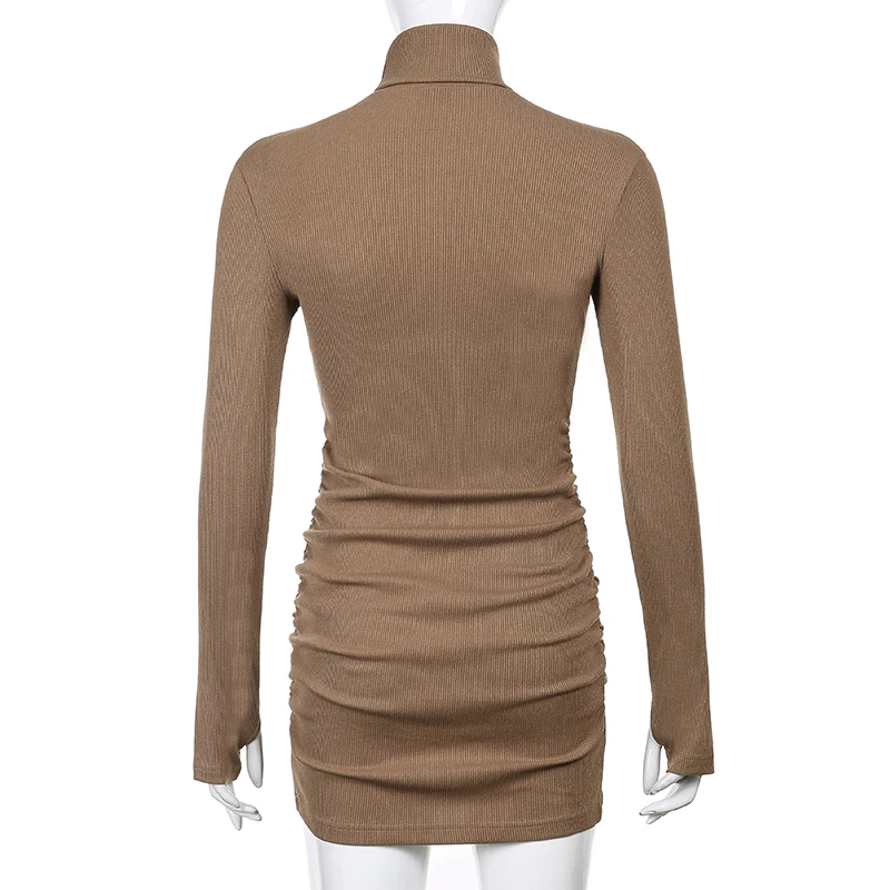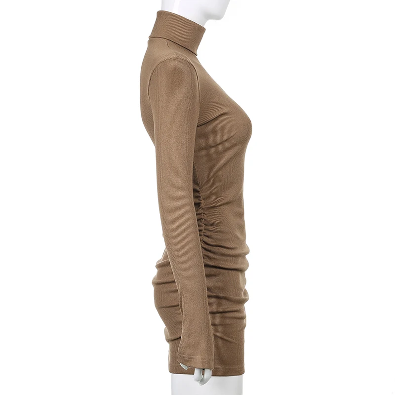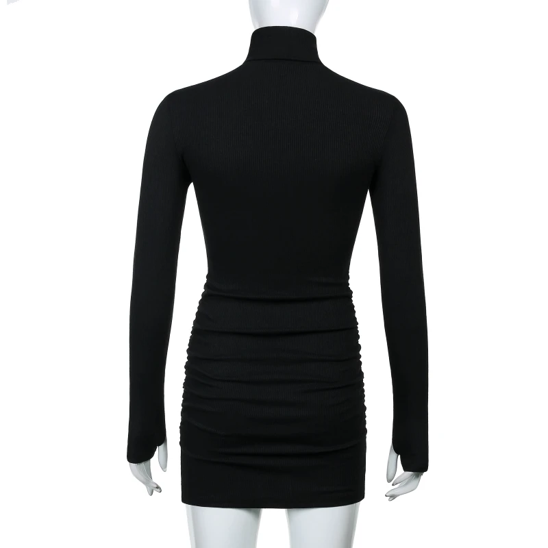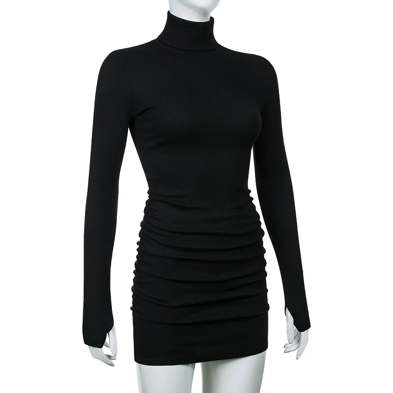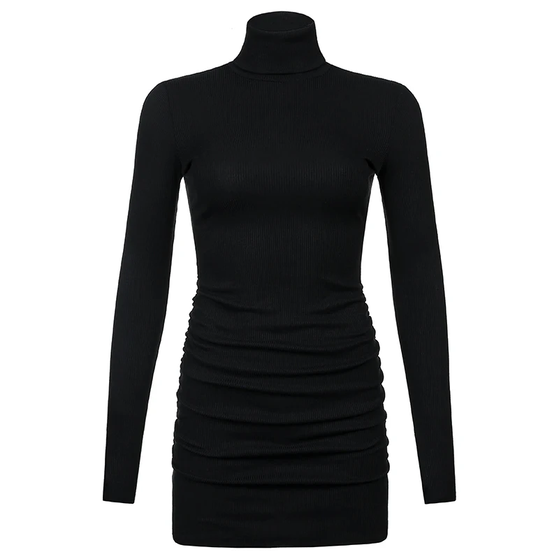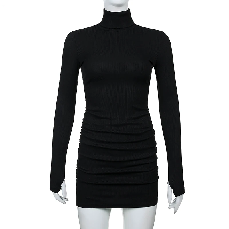 Женское Короткое платье-футляр с длинным рукавом, в рубчик