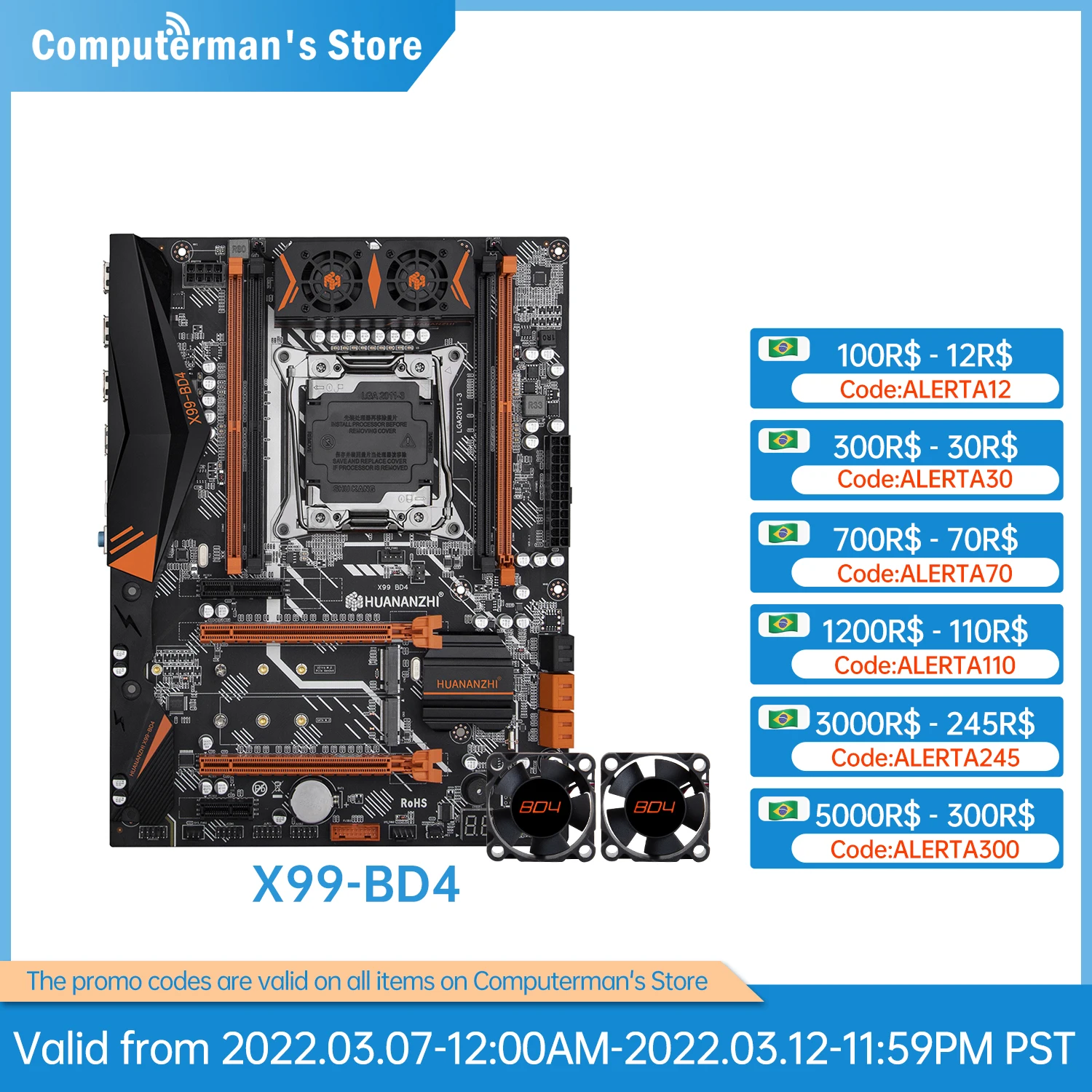 Материнская плата HUANANZHI X99 BD4 с МОП-вентилятором X99, Intel XEON E5 LGA2011-3, DDR4 RECC, без ошибок, поддерживает NVME NGFF